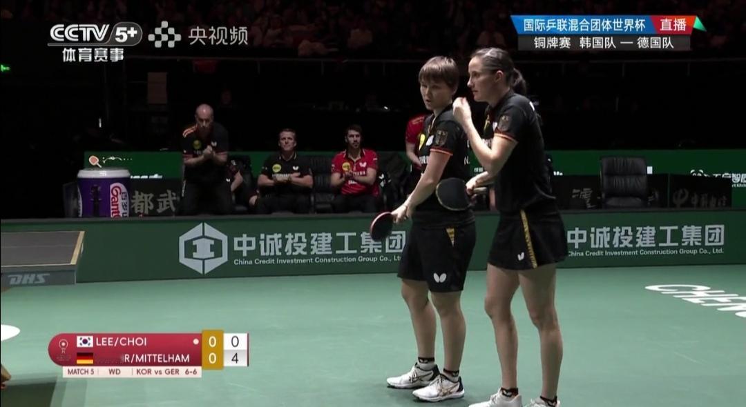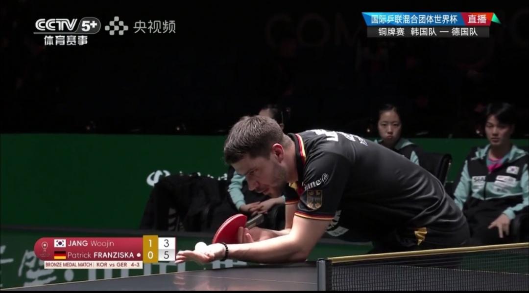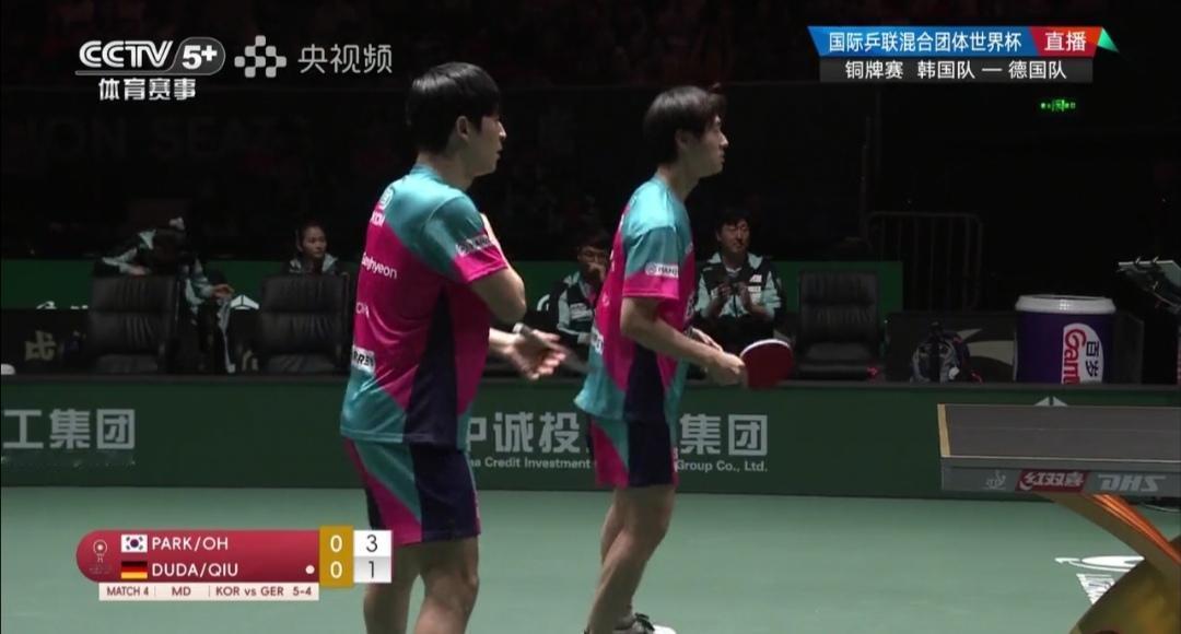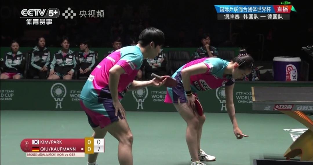 恭喜德国8:7胜韩国队,夺得铜牌!首次站上混合团体世界杯领奖台! 成都混合团体世界杯铜牌争夺战 韩国队Vs德国队 昨天,第二阶段循环赛第5轮,双方比赛刚刚打完,德国队8:7险胜韩国队,是“成都杯”开赛以来的第四个15满局! 双方知根知底了,德国队心理因素占优! 德国队率先变阵,弗朗西斯卡单打,邱党双打互换了角色! 韩国队只是针对昨天男双、女双均1:2输了,作了微调! 不变的是双方比赛服! 第一盘混合双打 朴康贤/金娜英1:2(5-11;7-11;11-8)不敌德国邱党/考夫曼。 第1局德国队7:0开局! 第二盘女单 李恩惠2:1(5-11;11-9;12-10)逆转胜德国温特。 第三盘男单 张禹珍2:1(11-5;7-11;11-7)胜德国弗朗西斯卡。 第四盘男双 朴康贤/吴晙诚1:2(11-7;3-11;9-11)不敌德国邱党/杜达。 第五盘女双 李恩惠/崔孝珠1:2(9-11;11-6;1-11)负德国温特/米特兰姆。 德国队8:7胜韩国队! 与第5轮比赛结果一样! 热烈祝贺德国夺得铜牌!第一次登上混合团体世界杯领奖台! 这是“成都杯”开赛以来的第六个15满局!