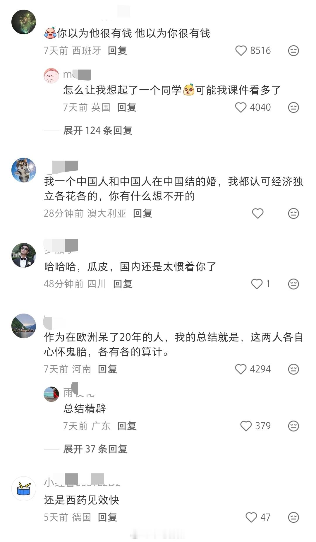 嫁到外国三个月有点不习惯,发帖问:想问下你们的老外老公要求经济AA制吗?⭐从一开始满满的幸福,到后来直接说“不想内耗了”,网友的回复是:还是西药见效快
