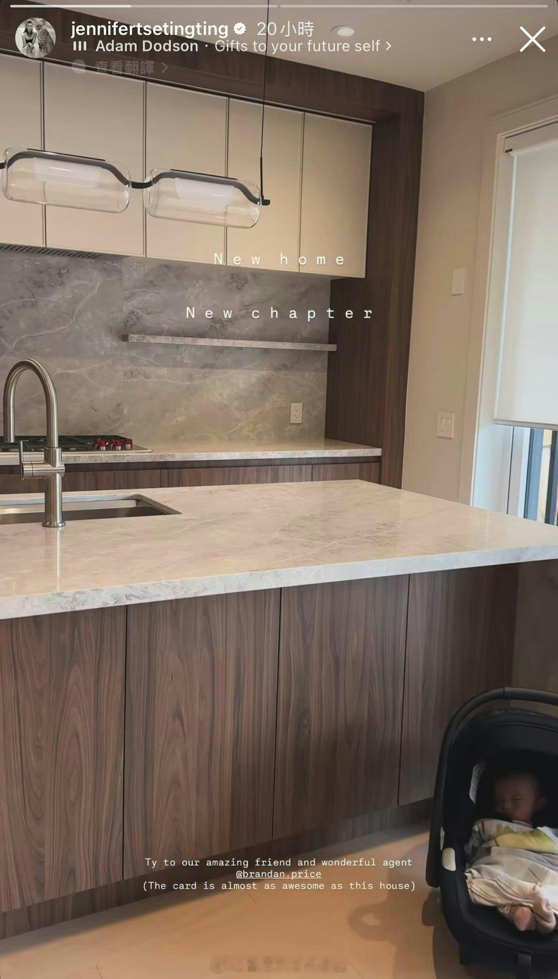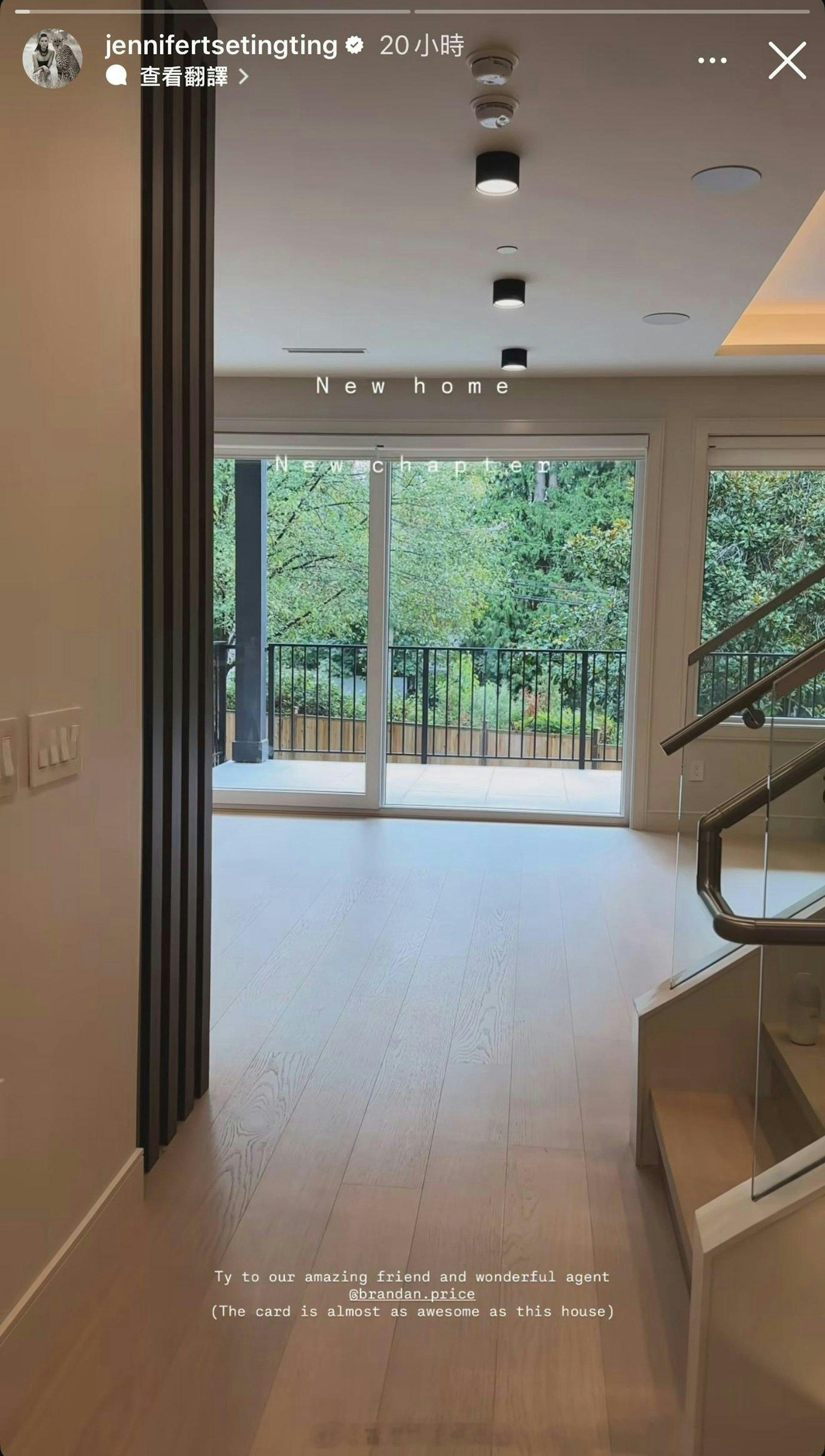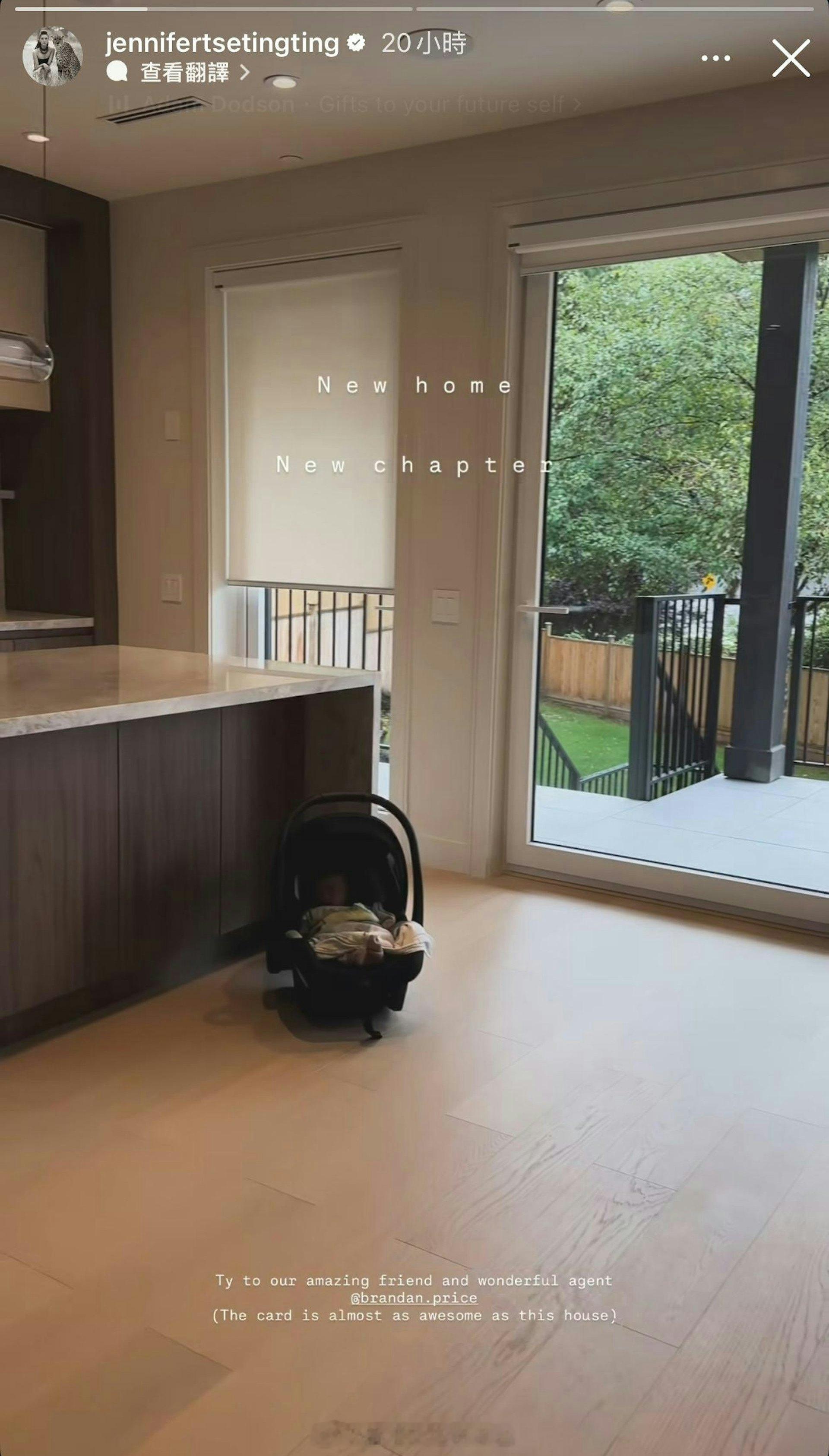 香港01:谢婷婷搬入复式新屋空间阔落设大露台 去年掷千七万买豪宅收租现年43岁的谢婷婷(Jennifer)自2019年突然宣布诞下女儿Sara后就淡出幕前,长居加拿大专心照顾爱女,但就对Sara生父的身份封口不提。今年情人节谢婷婷高调认爱,公开与靓仔外籍男友Mathew的甜蜜合照,并在5月宣布怀第二胎的喜讯!今年7月谢婷婷顺利诞下囝囝Brooklyn Milne,组成四口之家,早前更一家搬入新豪宅,展开人生新篇章!日前谢婷婷在IG分享新屋环境,并写道:“Tell me a baby lives here...without telling me a baby lives here.”相中可见,豪宅布置简约,客厅有不少BB用品及玩具,更设有一个大露台,摆放了户外梳化,落地玻璃设计采光度十足,相当舒适!其实谢婷婷之前亦曾分享豪宅内景,可见豪宅至少有两层,客厅及开放式厨房空间阔落,更设有户外大花园!谢婷婷自2019年秘密诞女定居加拿大温哥华后,生活低调,但财力依然不可小觑,有传谢霆锋在2017年豪掷约3,000多万,送赠位于西环的“维壹”千呎豪宅给谢婷婷作为生日礼物兼嫁妆,去年谢婷婷以首置名义斥资1710.6万港元购入跑马地山光道新盘“THE ASTER”一个低层连平台特色户,其后将单位以4.1万元租出,可见她生活无忧。