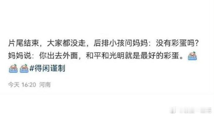 得闲谨制猫眼开分9.7分,看过人数三百多万人,没预热就空降定档,还能取得这样的成绩,这就是一部好电影的口碑,看完电影,没有出现彩蛋,原来彩蛋都在外面