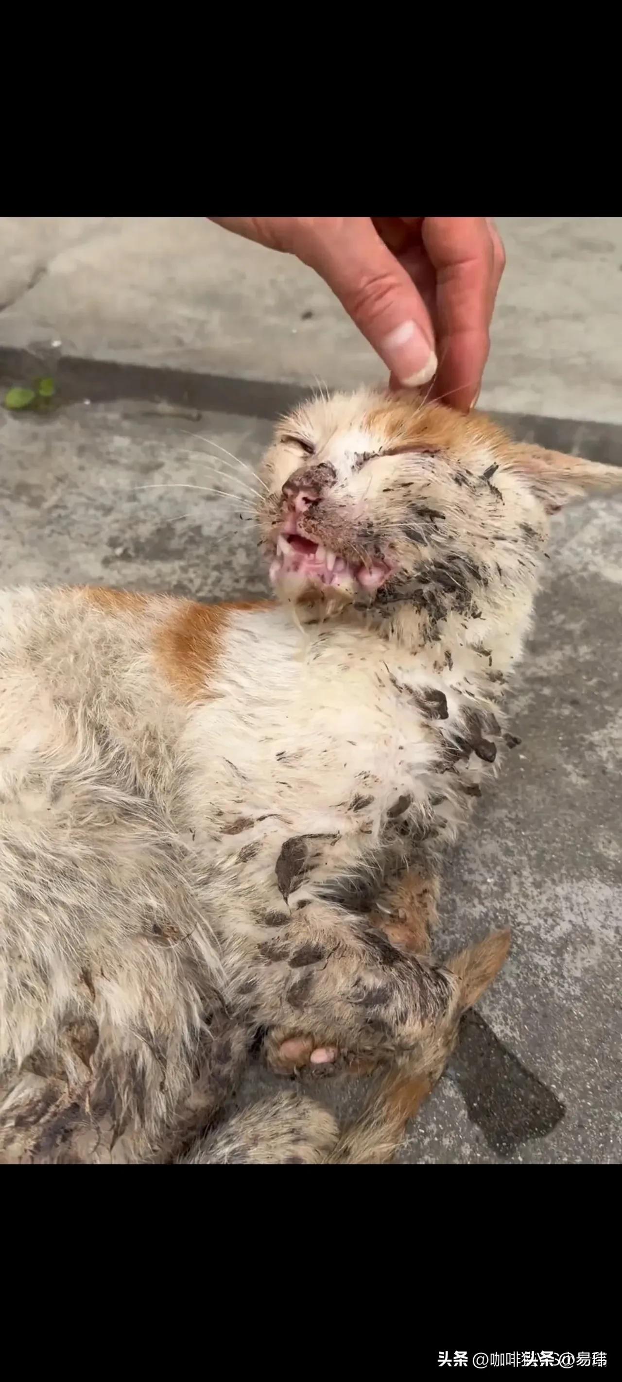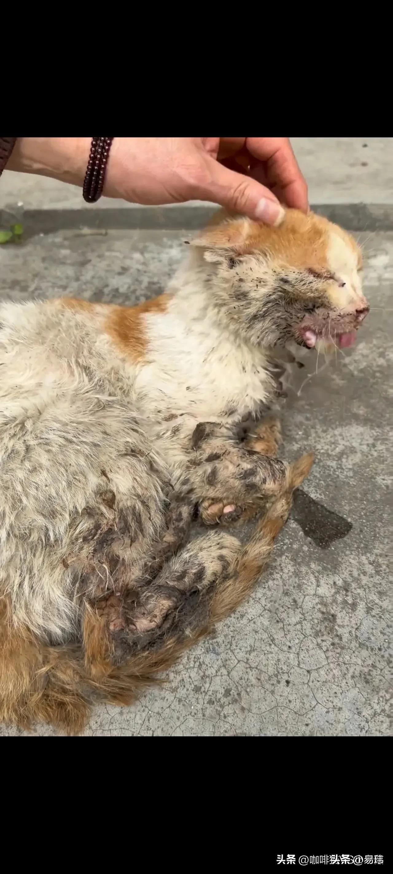 太可怜了!这天一位大哥去朋友家玩,当他走到一条小路的时候,看到无比凄惨的一幕,一只流浪猫的嘴不知道得了什么病还是被打伤了,都是伤口,而它的身上也长了许多寄生虫。 正躺在地上痛苦的哀嚎,一定饱受病痛的折磨,善良的大哥顿时心生怜悯,于是将它送去宠物医院检查并治疗,由于它的病情比较复杂,只能住院治疗一段时间,后来它出院了,大哥就收养它,相信在他的照顾下,这只猫的状态也越来越好了,精神状态也完全变了。