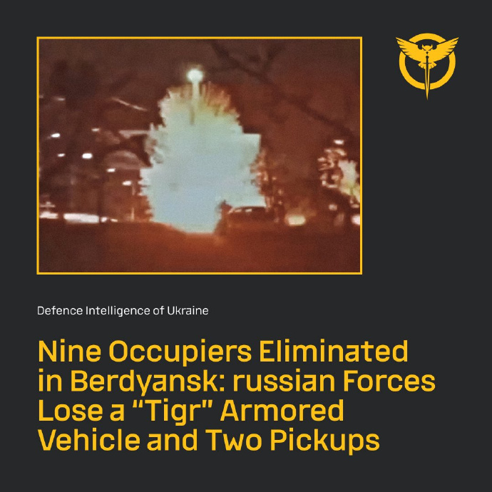 乌克兰国防情报局(DIU)12 月 1 日发布战报称,乌方在被暂时占领的别尔江斯克实施了一次精确打击,对俄军造成显著损失。根据通报,袭击发生于 11 月 19 日晚约 22:20,地点位于别尔江斯克城入口附近。当时,一组俄军人员在道路旁的广告牌区域聚集交谈,随后爆炸装置被引爆,造成俄方人员集中伤亡。乌方初步评估显示:5 名俄国民近卫军(Rosgvardia)成员当场身亡4 人严重受伤一辆俄罗斯“Tigr”装甲车与两辆皮卡被摧毁或完全失去作战能力国防情报局表示,此次袭击属于乌方持续削弱俄军占领力量、破坏其后勤与机动能力的一系列定点行动之一。此次别尔江斯克行动显示,尽管前线压力持续存在,乌克兰仍具备对俄军在占领区实施高精度打击的能力。俄乌局势新进展
