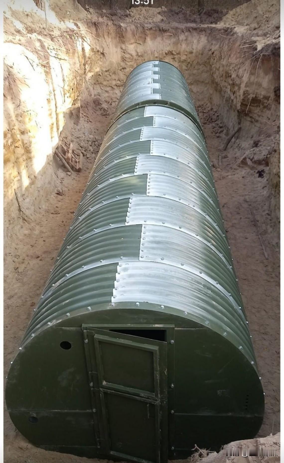 乌军的铁掩体。乌克兰官方公布了几张地下掩体的修筑培训图片,可以发现,现在的掩体搭设很容易,挖机挖一个槽,把铁掩体构件放下去,覆土就好了。再配置一些生活用品舒舒服服。 这也可以理解为什么那么多失踪的了,火炮打来,直接被震死在里面,找都找不到。