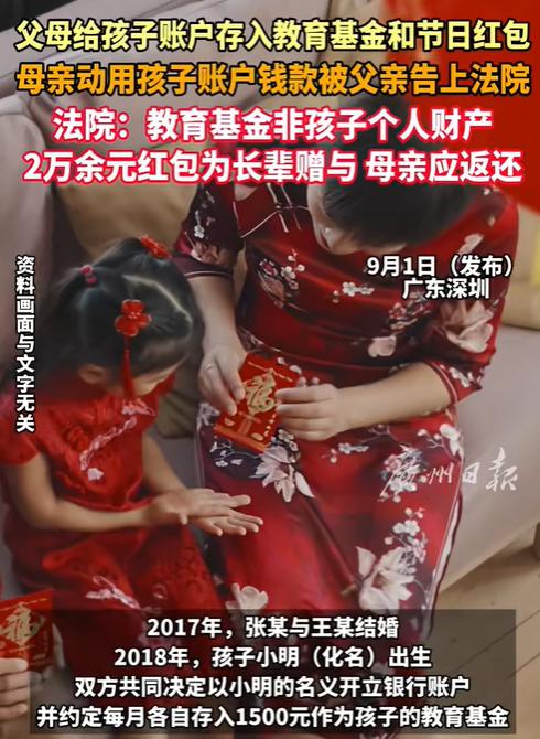 广东,一对夫妻为了给孩子留个保障,就约好每月往孩子账户里存钱!没成想二人离婚后,男子竟发现账户里只剩下900多元,而其他的钱全都被前妻私自取走了!男子被气得不轻,直接把前妻告上法庭,要求她退还这笔钱,最终法院这样判了! “我儿子的钱,我凭什么不能用?”王女士攥着银行卡,声音陡然拔高,眼睛里还混杂着委屈与愤怒。原来,就在几分钟前,张先生发现以儿子名义开设的账户余额仅剩九百多元时,竟然要求她如数返还。 儿子的这张银行卡,曾经是这个家庭温暖的见证。2018年,孩子出生后,夫妻俩怀着最朴实的期盼开了这个账户。他们约定每月各自存入1500元,作为孩子的教育基金。。逢年过节,亲戚朋友、长辈们给的压岁钱、红包,也都郑重地存了进去。 那时,王女士总是仔细记录每一笔存入,看着数字增长,仿佛看到了儿子一步步走向未来的模样。 然而,生活中的琐事还是消磨掉了两人的感情,2023年,他们走到了离婚的地步。孩子归张先生抚养,王女士在交出银行卡时神色如常,甚至带着一丝解脱。直到张先生去银行打印流水,才发现这五年来存进去的所有钱,竟然只剩下不到一千块。 “这些钱不只是你存的,还有我每月按时打进去的!”张先生指着转账记录,气得手都在抖,“更别说那些都是长辈特意给孩子的红包……” “那又怎么样?”王女士猛地打断他,“孩子的学费、保险费、买衣服买玩具,哪一样不要钱?去年生病住院的自费项目,不都是从这卡里出的?你以为养个孩子很容易吗?” 法庭上,这对曾经的夫妻再次对峙起来。当男方要求女方解释清楚一笔大额支出的用途时,王女士的声音明显低了些:“那是……那是给儿子报英语培训班的。” 可当被问及是否有相关合同或缴费凭证时,她却说:“时间久了,找不到了……” 这样的对话重复了好几次。王女士虽然声称每笔钱都花在了孩子身上,却难以提供充分证据。而那些清晰显示转入她个人账户的款项,尤其是一笔笔特意标注“压岁钱”的存款,实际却都消失在了日常消费中。 最终,法官作出了判决:夫妻双方每月定期存入的款项属于履行抚养义务,仍为夫妻共同财产;但长辈明确赠与孩子的总共25700元的红包钱,属于孩子个人财产。王女士无权擅自处分,应当返还差额24774.03元。 而且,法律上,父母只是未成年子女财产的监护人,并非所有者。这份爱心的储蓄,应该真正用于孩子的未来。 宣判后,王女士独自在法庭外站了好半天。她想起最初开立账户时,两人还笑着说这是给孩子的“第一桶金”,那时他们都不会想到,这张承载着父母深情的卡片,最终会成为离婚后清算的标的。 父母之爱子,则为之计深远。这份“计”,或许不仅在于攒下多少金钱,更在于如何用理性与责任,守护好这份馈赠,无论家庭经历何种变迁,都能确保那份专属于孩子的温暖,安然无恙地走向未来。 信源:广州日报——父母给孩子账户存入教育基金和节日红包 母亲动用孩子账户钱款被父亲告上法院 法院:教育基金非孩子个人财产 2万余元红包为长辈赠与 母亲应返还 文│一阳 编辑│萱萱老师