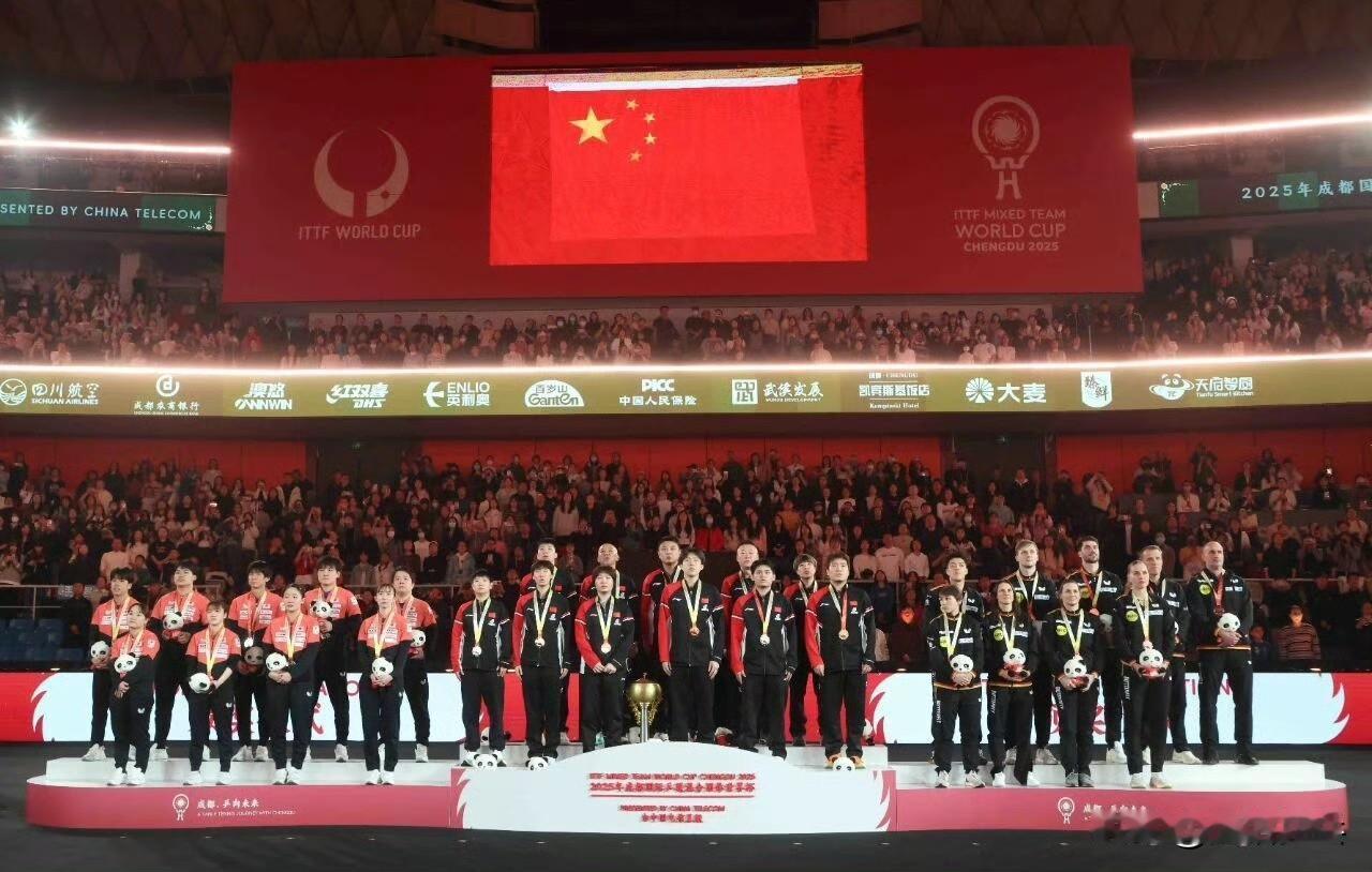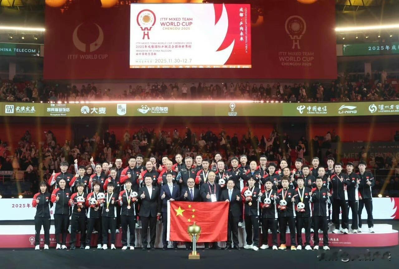 大合影! 2025年成都国际乒联混合团体世界杯 混团决赛:12.7 🇨🇳中国 8-1 日本🇯🇵 恭喜 中国队🇨🇳 获得2025年成都混合团体世界杯冠军🎉🎉🎉 冠军:🥇中国队🇨🇳(孙颖莎、王曼昱、蒯曼、王艺迪、王楚钦、林诗栋、梁靖崑、徐瑛彬) 亚军:🥈日本队🇯🇵(张本美和、伊藤美诚、大藤沙月、早田希娜、张本智和、松岛辉空、户上隼辅、篠塚大登) 季军:🥉德国队🇩🇪(安妮特·考夫蔓、沙宾·温特、尼娜·米特兰姆、帕特里克·弗朗西斯卡、贝内迪克特·杜达、邱党)