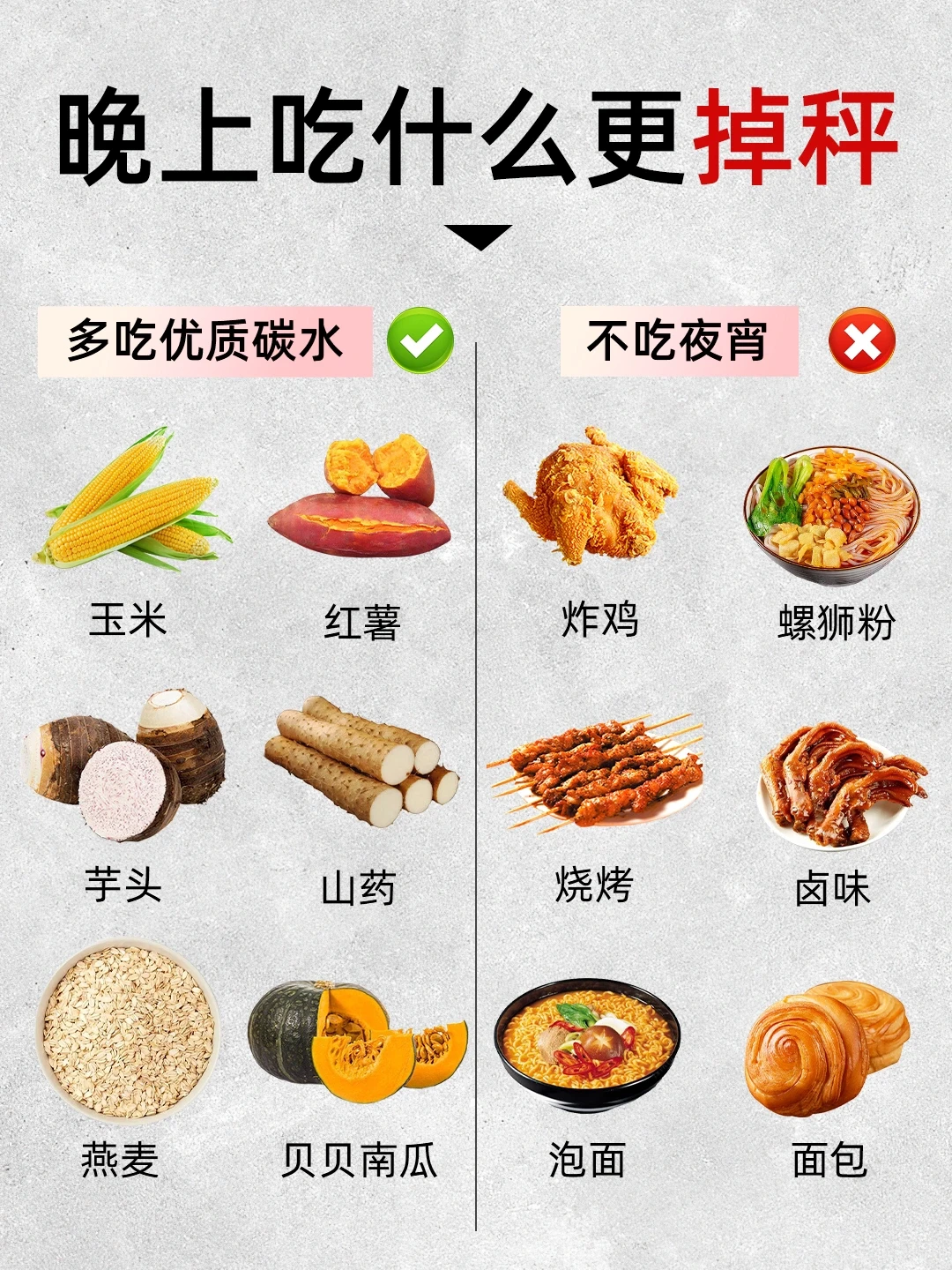 3️⃣控制主食,晚上的主食尽量选择一些根茎类植物,如土豆,紫薯,山药,莲藕,南瓜等