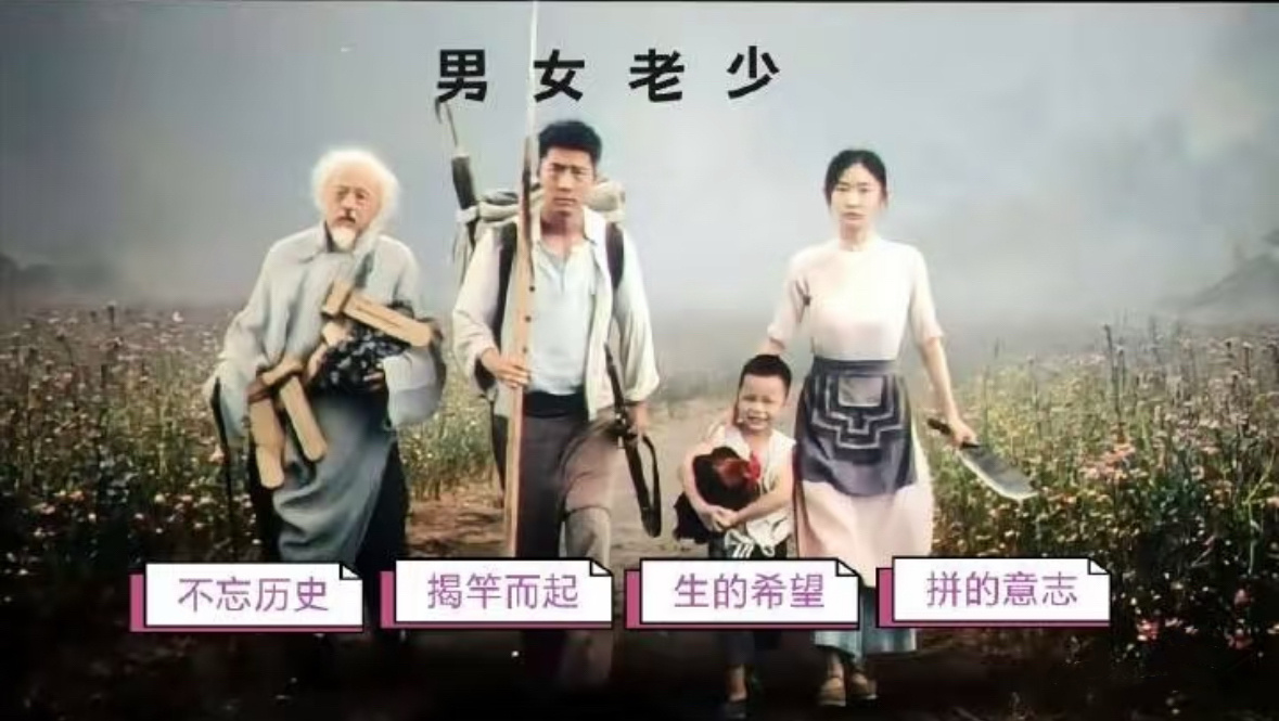 这一幕的含金量终于有人说明白了,牌位代表列祖列宗和死去的人;竹竿代表旗帜,菜刀代表反抗,孩子代表未来,公鸡代表国家,好电影的隐喻还得是得闲谨制