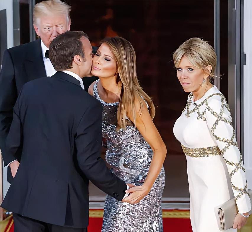 这张照片挺有意思,特朗普夫妇与马克龙夫妇见面的场景,只见马克龙与特朗普夫人梅拉尼娅正在手牵手进行贴面礼,一旁的特朗普一脸愁容,恨不得把眼睛闭上,而马克龙夫人布丽吉特更是直接把脸扭向一旁,怒目圆睁、牙根紧咬。 估计马克龙回到家又要被布老师一顿教育了。友友们觉得呢?欢迎在评论区分享交流。