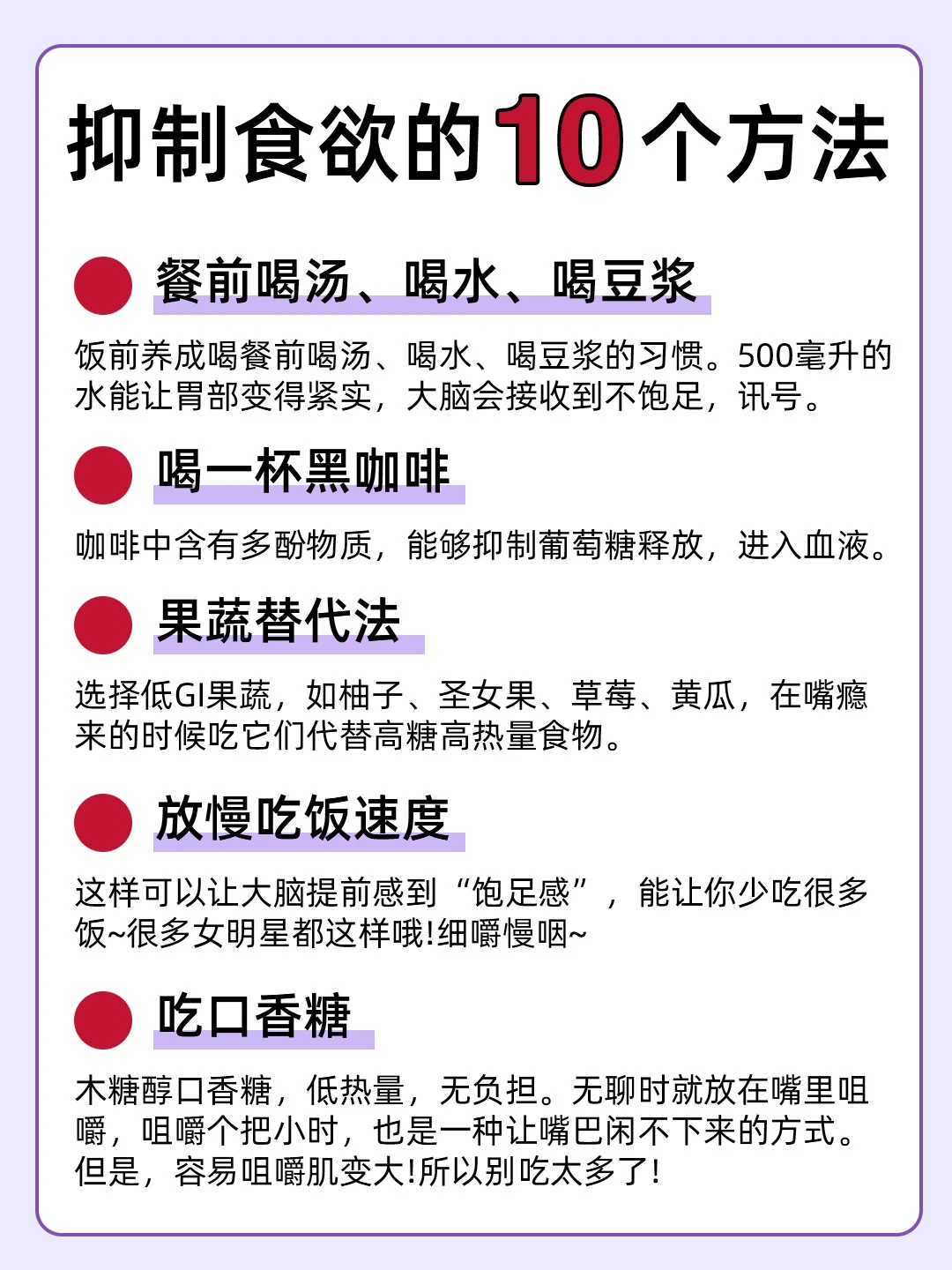 🌟经过与食欲多年的抗争,呕心沥血整理了几条亲测有效的抑制食欲大法✨