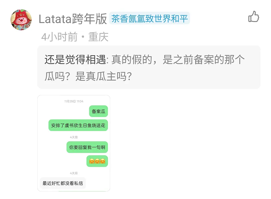 瓜主说何与给🐟送花是剧组的安排,与少wwzz
