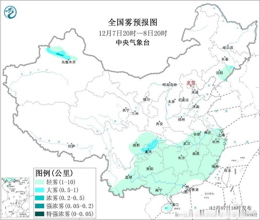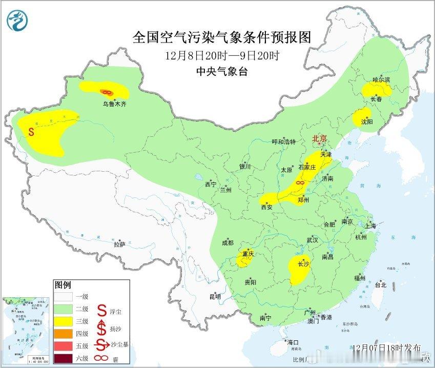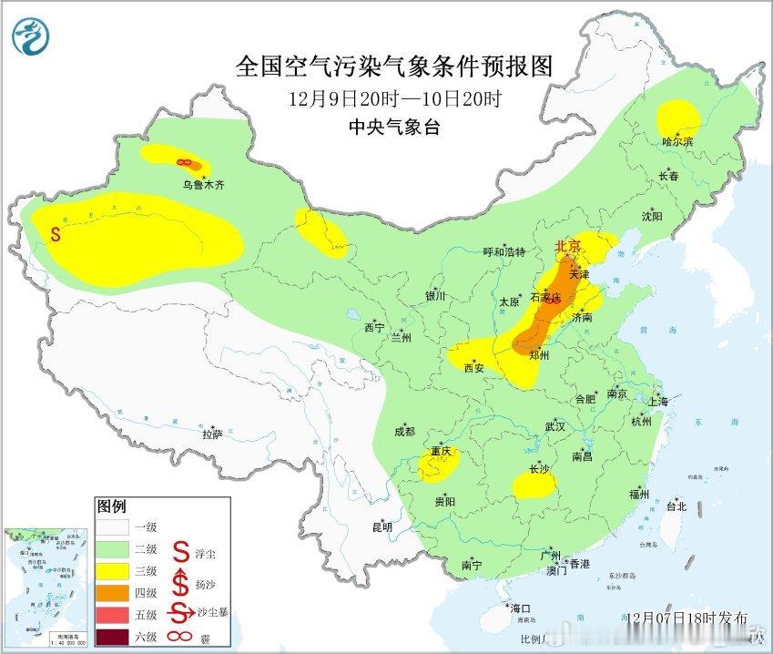 【雾和霾】今晚到明天上午,新疆天山北麓以及重庆一带,可能出现大雾。另外今天随着冷空气的偏北风南下,东北南部到黄淮一带的污染总体减轻,霾基本消散。明天中东部总体的大气扩散条件较好。不过9-11日,在冷空气活动间隙,华北南部到黄淮一带,扩散条件又会转差,可能出现霾。12日随着冷空气和降水到来,扩散条件再转好。
