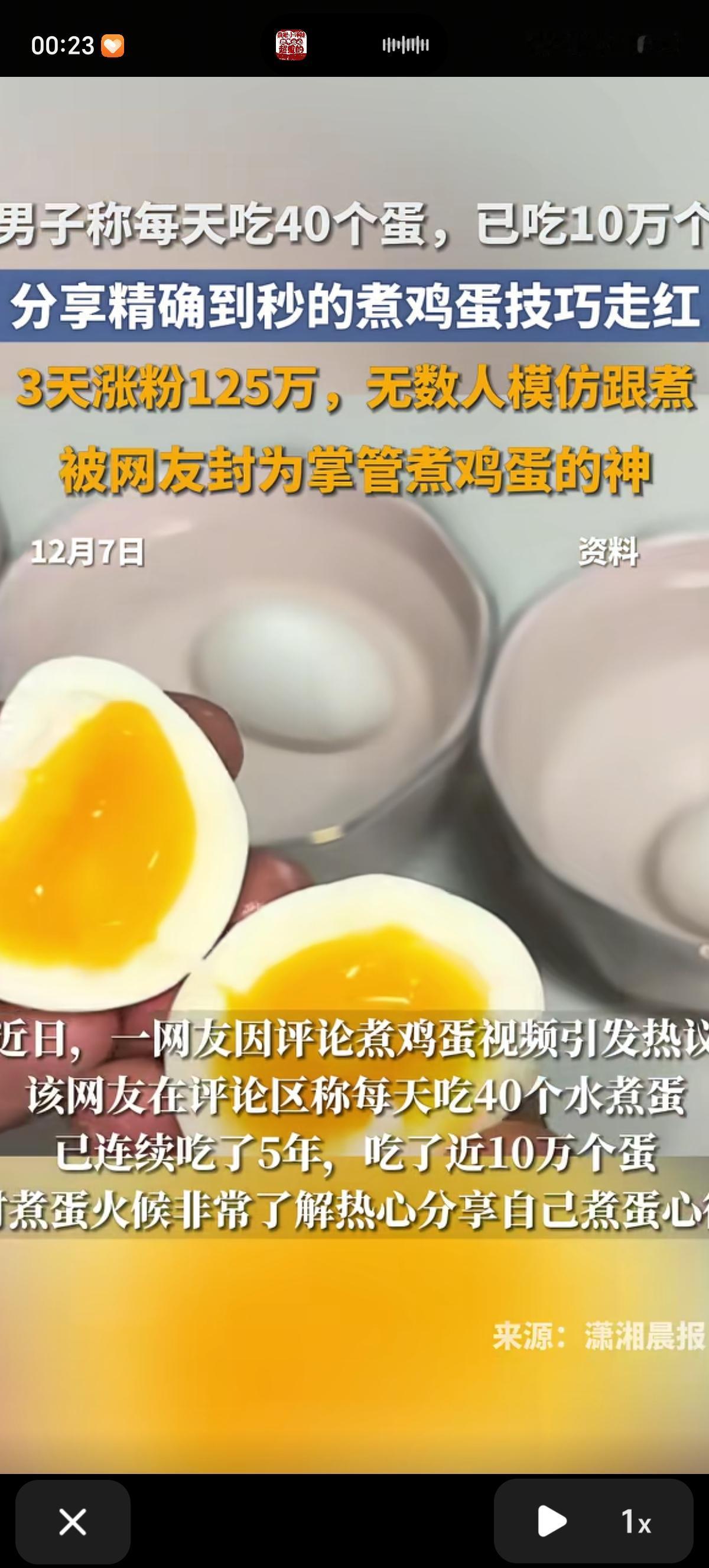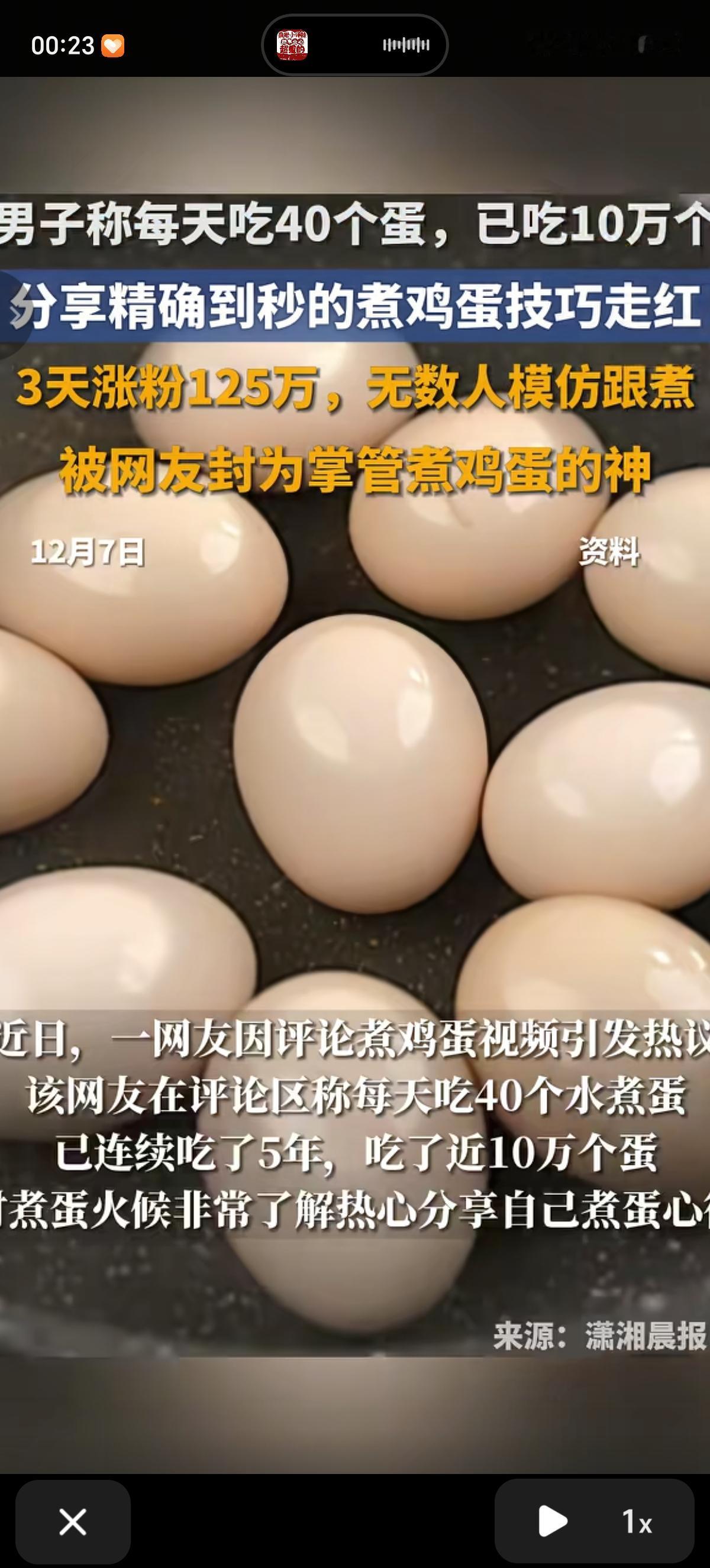 湖南有位大哥每天雷打不动吃40个鸡蛋,算下来至今已经吃了10万多个,还琢磨出一套“精确到秒”的煮蛋秘诀,关键是吃了这么多年,身体一点事儿没有网友看了都直呼“学到了”! 咱直接上干货,这零失败煮蛋技巧记好咯: 先把鸡蛋冷水下锅,水得没过蛋身2厘米,再加点1小勺盐,既能防止煮的时候破壳,后续剥壳也超轻松;等大火把水煮沸,立马转小火保持微沸状态,想吃溏心蛋就计时6分30秒,喜欢全熟但蛋黄又带点微沙、不噎人的,就煮8分10秒;时间一到别犹豫,赶紧把鸡蛋捞出来,放进冰水里泡5分钟,这一步是剥壳不粘蛋白的关键,泡完之后蛋壳一撕就掉,蛋白嫩滑得很! 大哥说自己吃蛋十年都没腻,每天40个蛋会分成5-6次吃,不会一次猛吃,还会搭配蔬菜和粗粮,营养均衡不单调。网友们都笑称“这是把鸡蛋吃成‘硬通货’了”,不少人跟着试了试煮蛋技巧,反馈都超好:“真的秒得完美溏心蛋,以前煮蛋全凭感觉,现在有了精确时间再也不翻车了!”