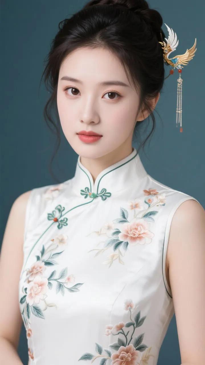 惊艳的东方美人,身着红色旗袍,尽显古典韵味。
