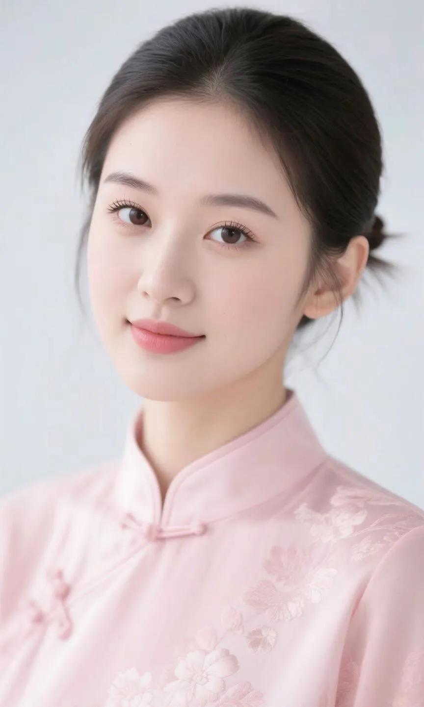 温柔笑颜,粉色旗袍,优雅气质,尽显东方美。