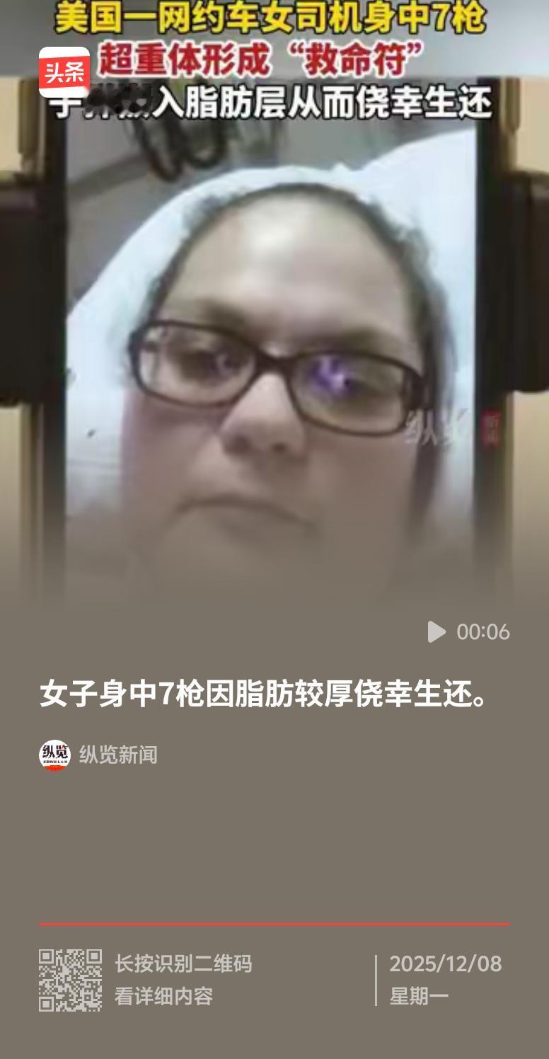 美国这起网约车女司机的遭遇,简直比电影还惊险。2021年,36岁的布兰迪·丽特雷尔在“lyft”接单,乘客马吉却在途中掏枪抢劫,还把她带到树林连开7枪。以为她死了就跑去上班,心可真够大。 好在丽特雷尔命大,拼着最后一口气爬到公寓求救。医生检查发现,子弹避开重要器官,全嵌在脂肪里,这超重的体形成了“救命符”。今年4月法庭对质,她心理创伤严重,肩膀活动也受限,体内子弹碎片还会触发安检警报。马吉被判30年,也算是罪有应得。只能说,这经历太魔幻了。 女司机