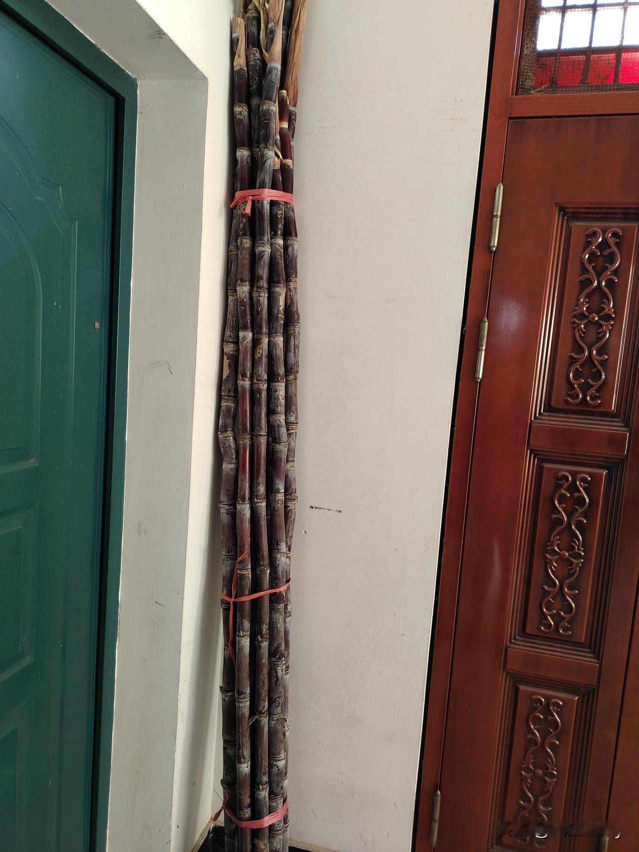 虽然疑惑,今年这么好的甘蔗他居然没有卖完就送人了,但是还是对于他舍得送甘蔗,说明他还是有我们这个街坊的。 简单聊了几句,他今年也就买了十包种子种了一亩多地吧,哪承想今年甘蔗行情不好,好歹两个月下来还剩下16捆甘蔗,就再也不想出门溜达着去卖了,亲朋好友就各自送个十捆,剩下的留给自己吃了算了,也算是一年种甘蔗下来犒劳一下自己了。 往年他种甘蔗都是一米多高,今年这甘蔗都有近两米以上了,从节点来看均匀光滑,颜色也很好。要是在原来的市场行情上,这种品相的甘蔗最好卖的了,怎么今年的甘蔗就这么难以售卖呢?! 现在的人种甘蔗也讲究科学种植了,老公曾经帮多家街坊挖过甘蔗,今年的甘蔗都是无论粗度和高度,节点和甜度都可以说是相当不错的,经过跟他们聊天才得知他们的秘密了,只要会上网购物的街坊,现在都不再劳神费力的跑市场买药了,都在网上买药了,又节省时间又省钱而且方便快捷效果还好,从他们种的甘蔗中就能看出成绩了,因为在网上还能搜到关于甘蔗生病防治的药,对于及时控制甘蔗病虫害有很好的选择和保障了。 种上了这么好品质的甘蔗,却遇上今年的行情不好,甘蔗难卖不说还没有好价位,真是苦了蔗农了哟!