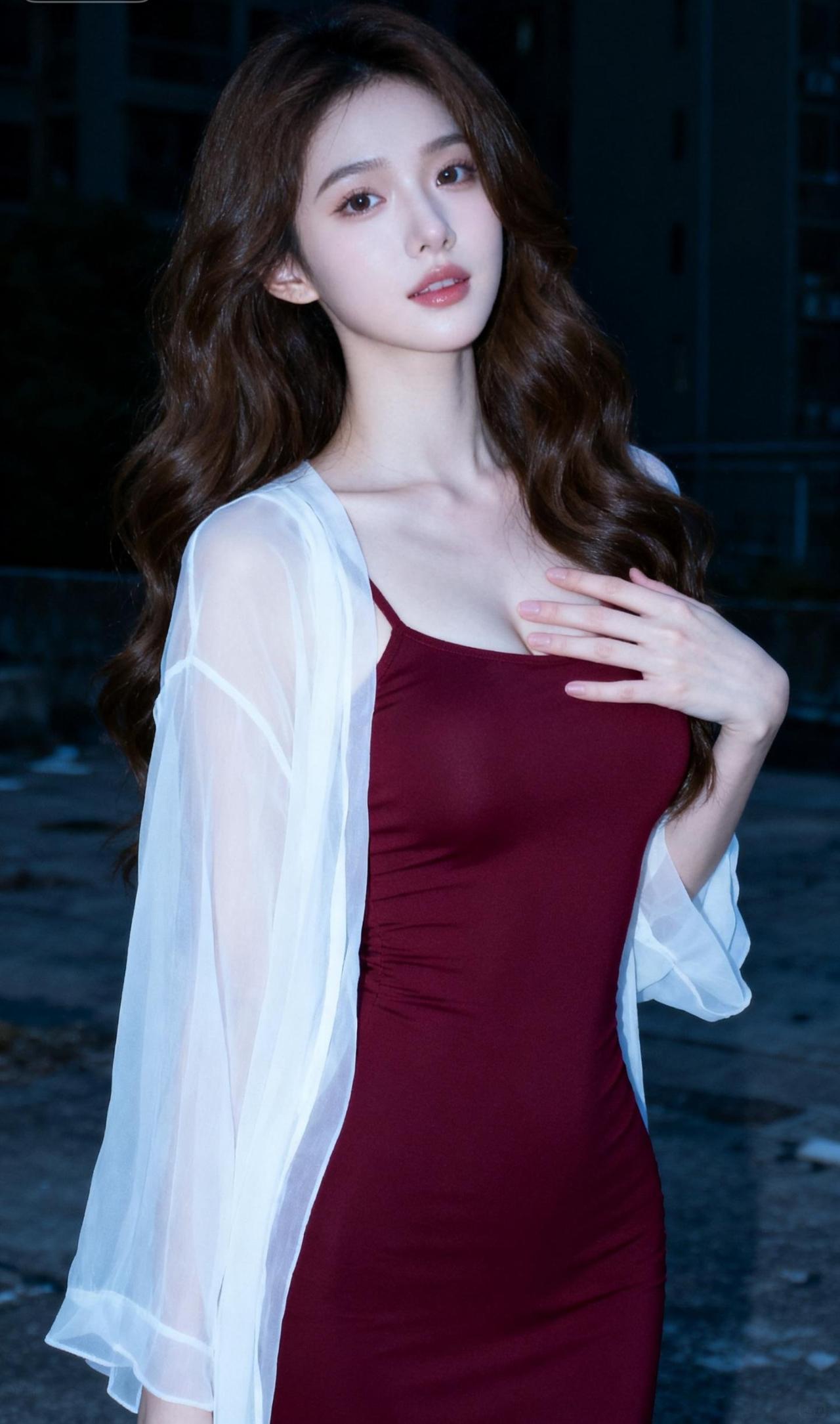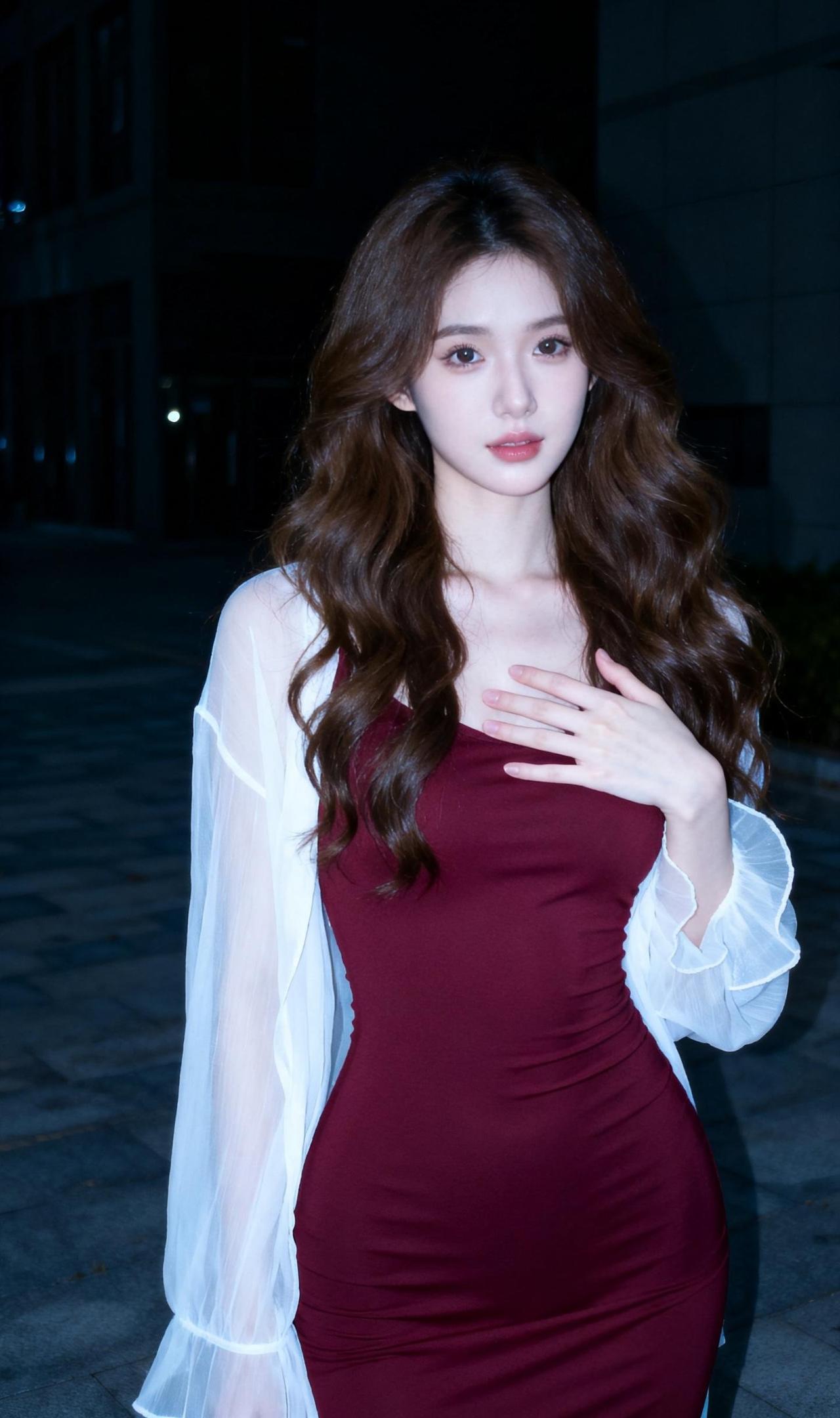 夜晚的优雅,红裙与白纱的完美结合,尽显迷人魅力。美人照怎么拍才好看 分享甜美小姐姐随手拍