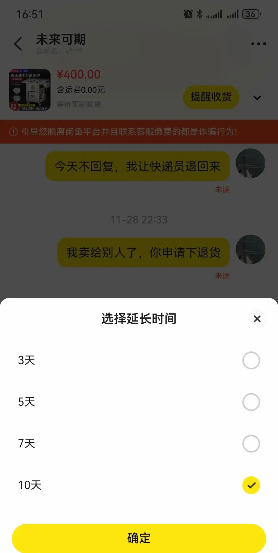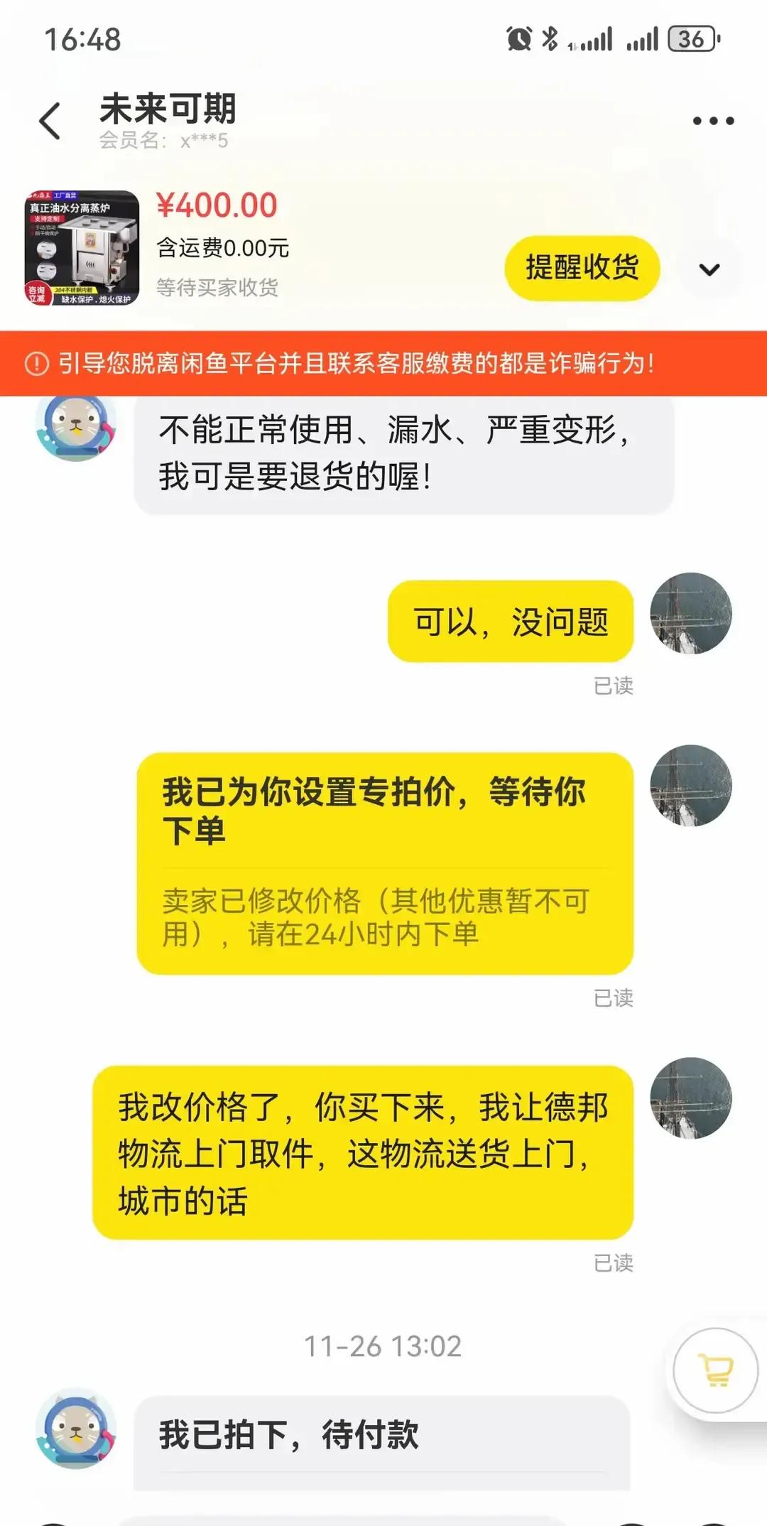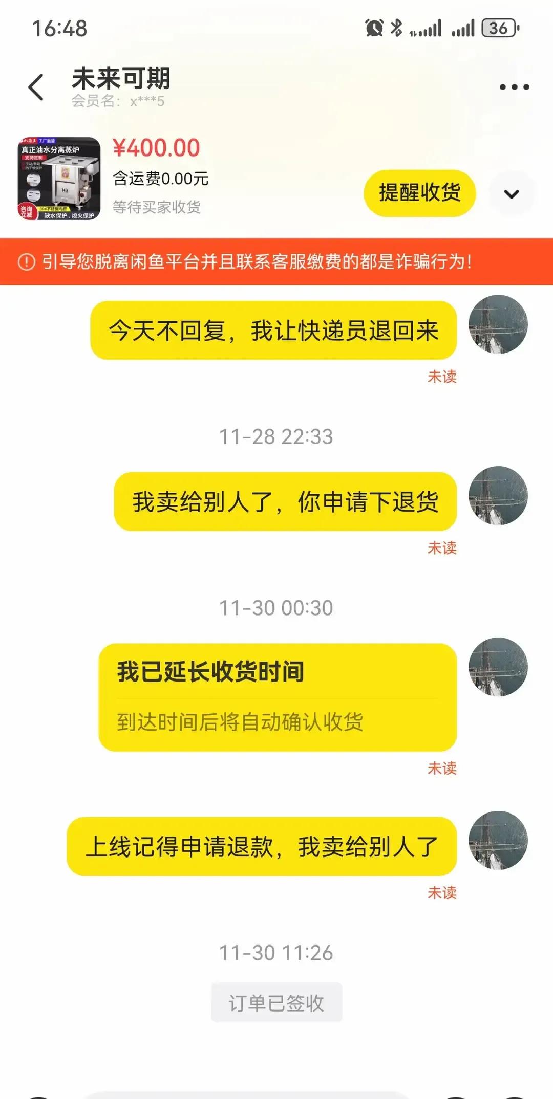 闲鱼卖家挂出400块的东西,买家秒拍后人间蒸发,电话空号,站内信石沉大海。 按规矩15天系统自动打款,他愣是手动给对面续命6天,前后空等20多天,货压在手里只能重新上架。 新买家收货后,他还在抖音喊:原主只要上线点退款,我立刻退钱。 网友炸锅,有人夸他是二手界活菩萨,也有人担心他吃亏。 我看视频里他把订单截图贴得满满当当,生怕别人误会他贪那几百块,看着又好笑又心酸。 这年头自己守信用,还替消失的人兜底,少见。 愿好人别被辜负,也提醒买家留对电话,别让人傻等。