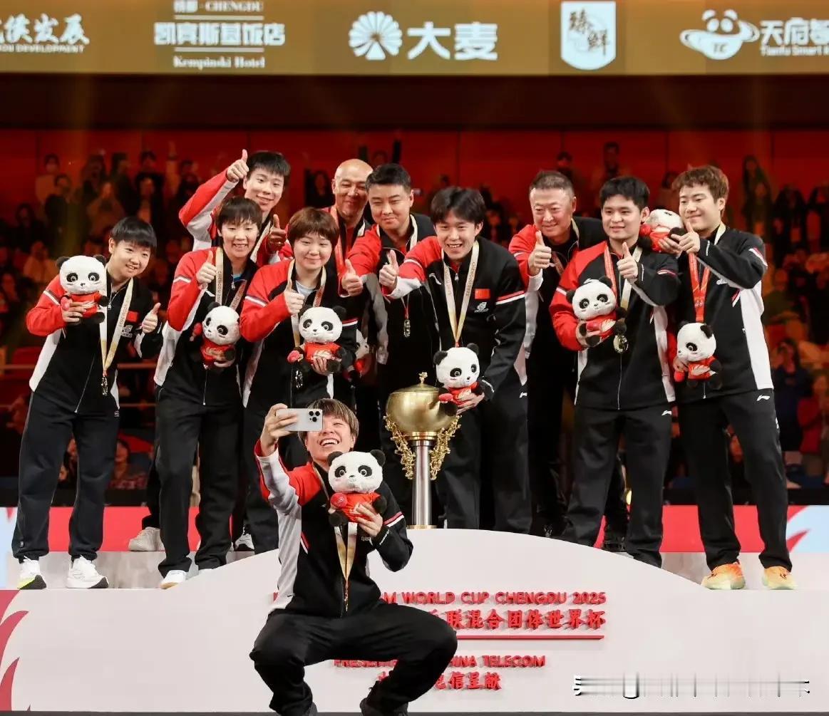 徐瑛彬成为了国乒第120位世界冠军! 2025混团世界杯中国队顺利夺冠,参赛球员 中除了孙颖莎、王曼昱、王楚钦、林诗栋、王艺迪、蒯曼多了一个世界冠军的头衔外,首次参加混团世界杯的徐瑛彬也顺利拿到了职业生涯第一个世界冠军!尽管这次只打了一场比赛一分未拿,但他终究是团队一员!换言之,团体赛就是一荣俱荣,一损俱损的存在,夺冠了大家都是冠军,失利了大家都什么也不是,甭管你付出了多少!但徐瑛彬还是比较幸运的!