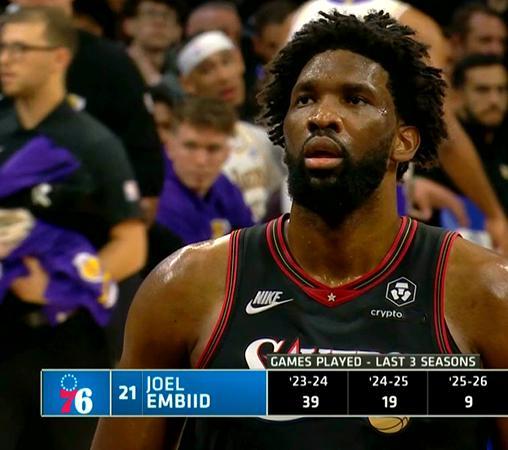 ▲恩比德最近三年,出勤一年比一年少