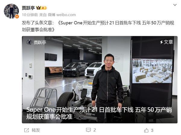 【贾跃亭:FX Super One首批车将于21日下线 计划五年产销50万台】快科技12月8日消息,法拉第未来创始人贾跃亭发文称,FX Super one首批车下线仪式将于美国时间12月21日在汉福德工厂举行。至此,首批下线的Super One预量产车所需的全部零件已经到齐,每辆单车包含近3000个零部件,明天将正式启动生产。贾跃亭表示,这也标志着桥梁战略即将合龙,打通了从供应链采购、测试、运输、清关验证和生产制造的闭环,进一步验证了 桥梁模式在关税、ICTS 合规、成本控制、效率等多维度的可行性和战略价值。同时助力中国汽车供应链出海,以及在美国这个全球最高价值市场的价值释放等。此外,贾跃亭还表示,公司董事会已于本周正式批准包括产销40-50万辆在内的FF 与 FX 的未来五年商业计划。基于融资的顺利推进、战略合作伙伴的支持及更多协议的签署等前提条件。这将对FFAI的战略推进和股东价值最大化的目标实现打下坚实的基础。据了解,FX Super One的第一辆车,已经被贾跃亭交付给足坛明星安德雷斯·伊涅斯塔。而FX Super One在今年10月28日在阿联酋迪拜正式发布,中东市场首发FX Super One AIHER Max版本,市场售价30.9万迪拉姆(约合人民币59.8万元)。不过,需要指出的是,FX Super One实际就是长城魏牌高山9的“改脸车”,国内官方指导价为35.38万元。(快科技)