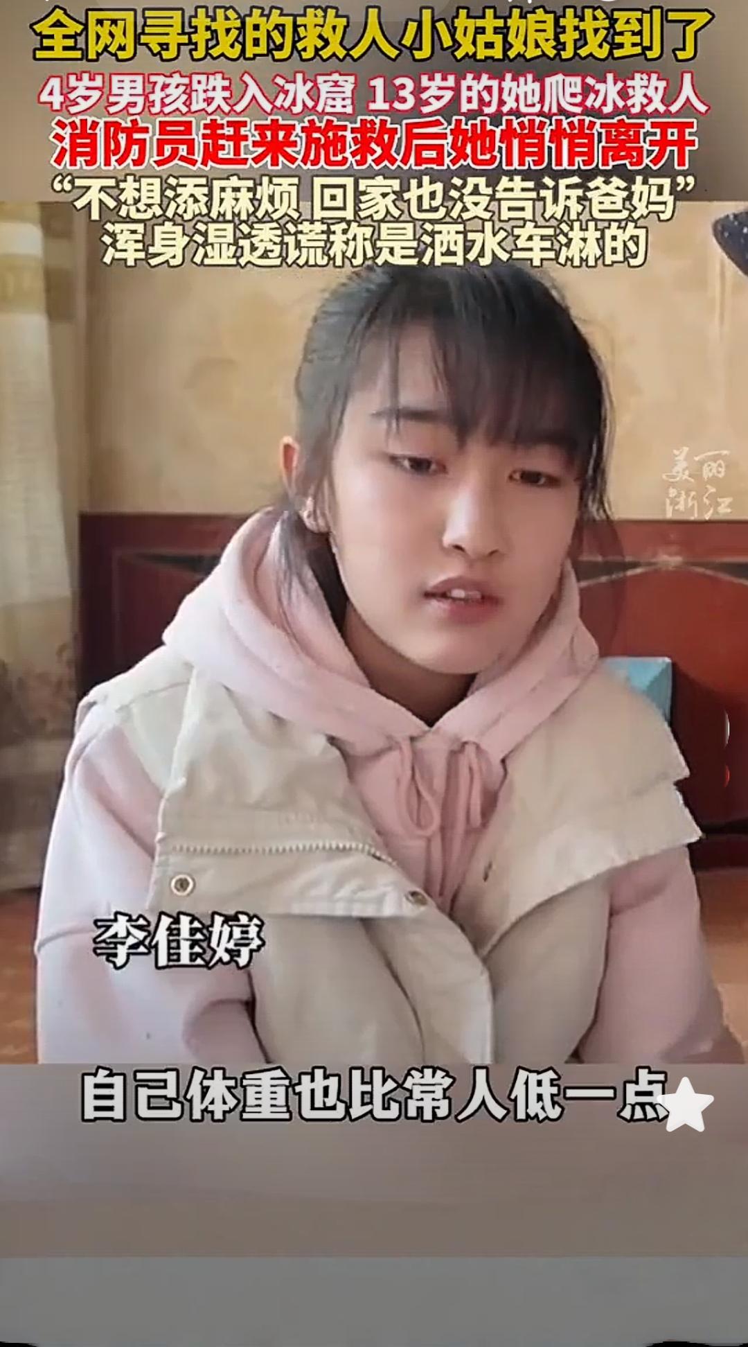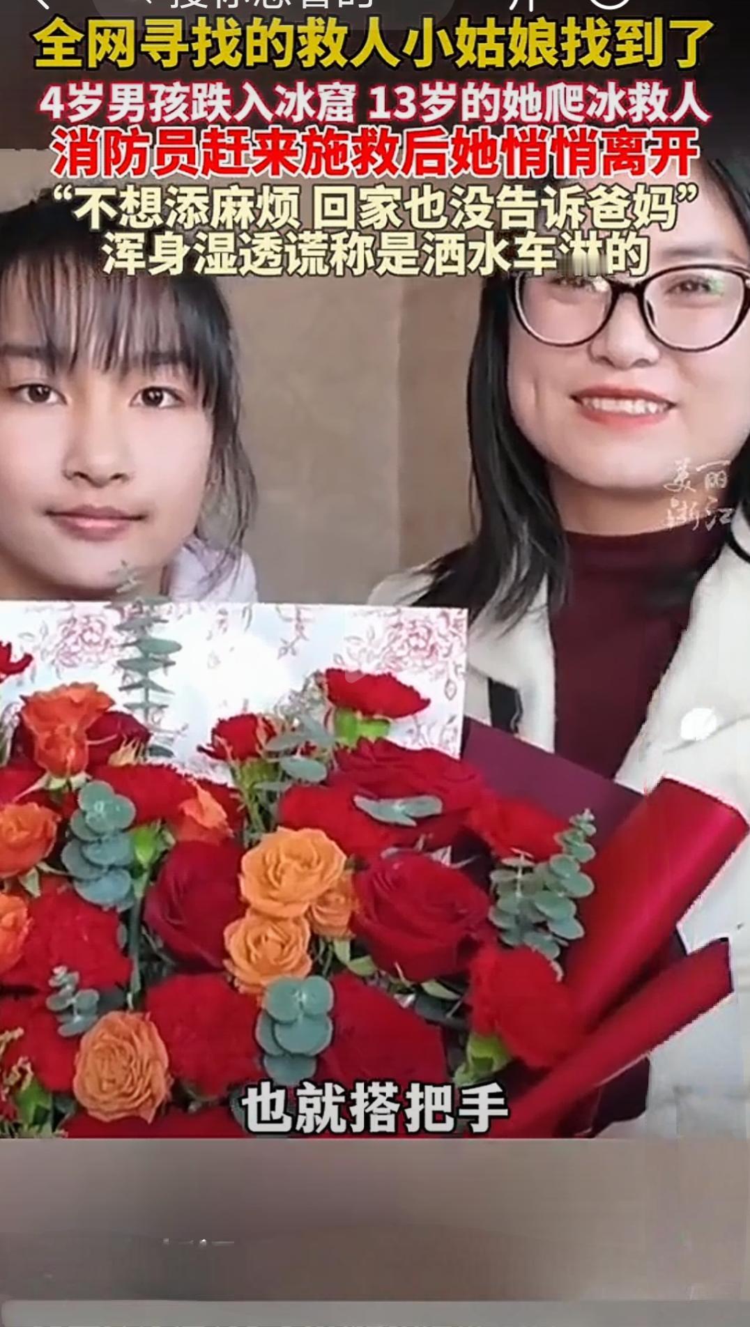 全网寻找的救人小姑娘找到了 4岁男孩跌入冰窟13岁的她爬冰救人 消防员赶来施救后她悄悄离开 “不想添麻烦回家也没告诉爸妈” 浑身湿透谎称是洒水车淋的 全网寻找的救人小姑娘终于找到了,但这个故事远比我们想象的要复杂得多。那天,冰天雪地中,一个4岁的男孩不幸跌入了结冰的湖面,眼看着就要被冰水吞噬。就在危急时刻,一个13岁的女孩毫不犹豫地冲了上去,她没有多想,只知道“救人”这两个字在那一刻比任何话都重要。 她用尽全力,用手抓、用脚踢,拼命想把男孩拉上岸。旁观者都被她的勇气震撼了,消防员赶到时,她已经筋疲力尽,但脸上那份坚毅让人心疼。最终,男孩得救了,冰面上的危机暂时解除。 可是,令人意想不到的是,救援结束后,这个勇敢的女孩悄悄离开了现场,没有留下任何联系方式,也没有接受任何表扬。有人试图找她问个明白,她却谎称自己是洒水车淋的,浑身湿透,掩饰着自己的身份。为什么?她说:“不想添麻烦,回家也没告诉爸妈。”这背后隐藏着怎样的故事? 或许,她只是一个普通的孩子,心中充满了善良和责任感,但又因为家庭、环境的原因,选择了低调、隐忍。她的勇气令人敬佩,但她的选择也让人深思:在这个社会,善良和勇敢是否总能得到应有的尊重和保护?我们是否在无意中忽视了那些默默付出、却没有被关注的“英雄”? 这个女孩的故事,折射出一个令人心碎的现实:许多像她一样的“无名英雄”,在我们身边默默奉献,却难以得到应有的认可。她用行动证明了,善良不需要炫耀,但社会需要更多的理解和温暖。我们是否也应该从她的故事中汲取力量,去关心身边的每一个“无名英雄”?去用善意和行动,点亮这个世界的每一个角落? 也许,她的选择让人心疼,但更让人感动。她用实际行动告诉我们:勇敢不仅仅是冲在前面,更是一种责任和担当。希望这个故事能唤醒更多人的善良,让我们在这个浮躁的时代,依然相信人性中的美好。因为,正是这些“无声的英雄”,让这个世界变得更加温暖、更加值得期待。