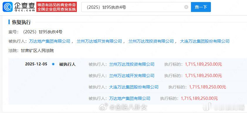 王健林名下大连万达集团被执行17亿大连万达集团等被恢复执行17亿,由王健林担任法定代表人、董事长职务