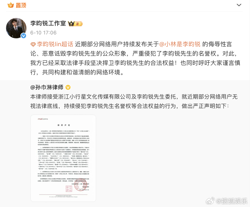 李昀锐方更新告黑进展 今日,李昀锐工作室更新针对132个侵权账号的告黑维权进度,其中多件已立案或维权下架,部分已取证并提交材料。 李昀锐告了132人