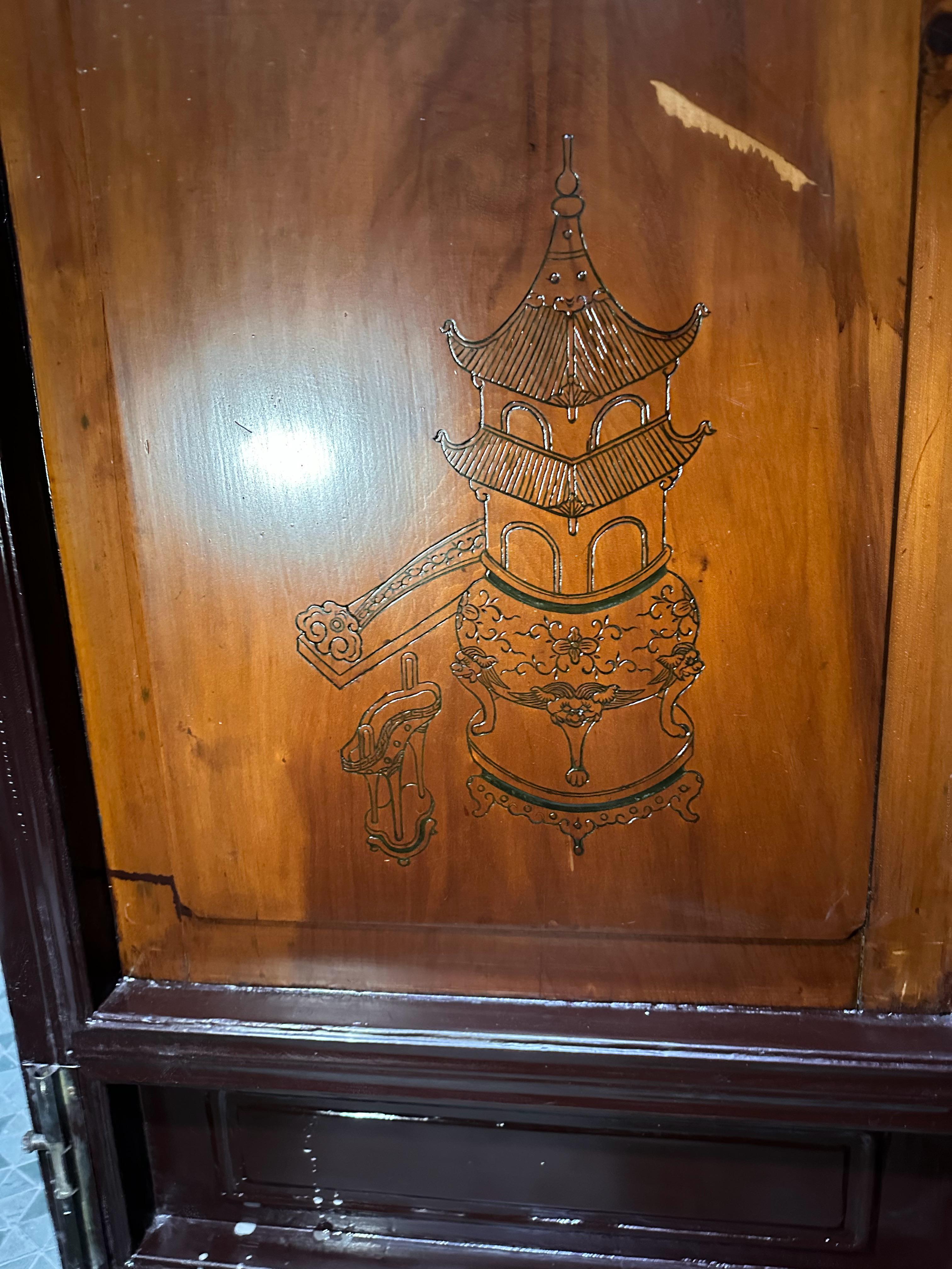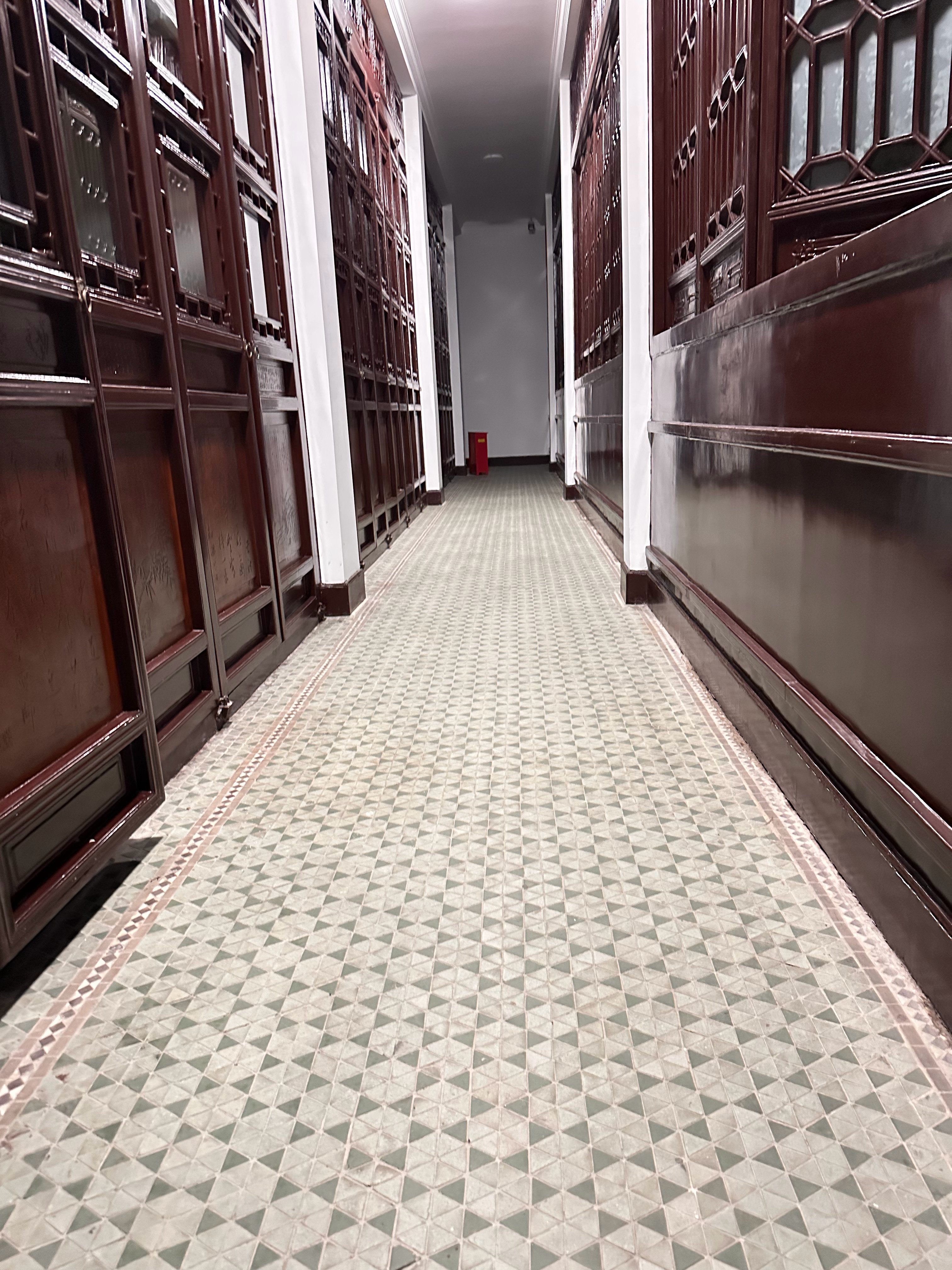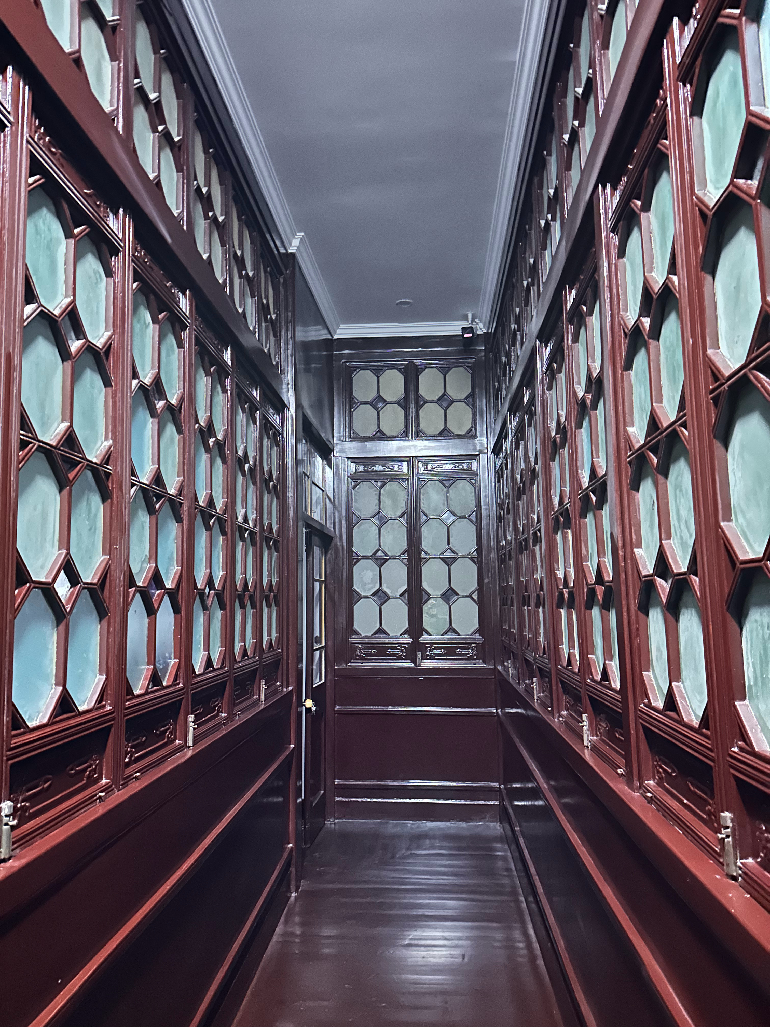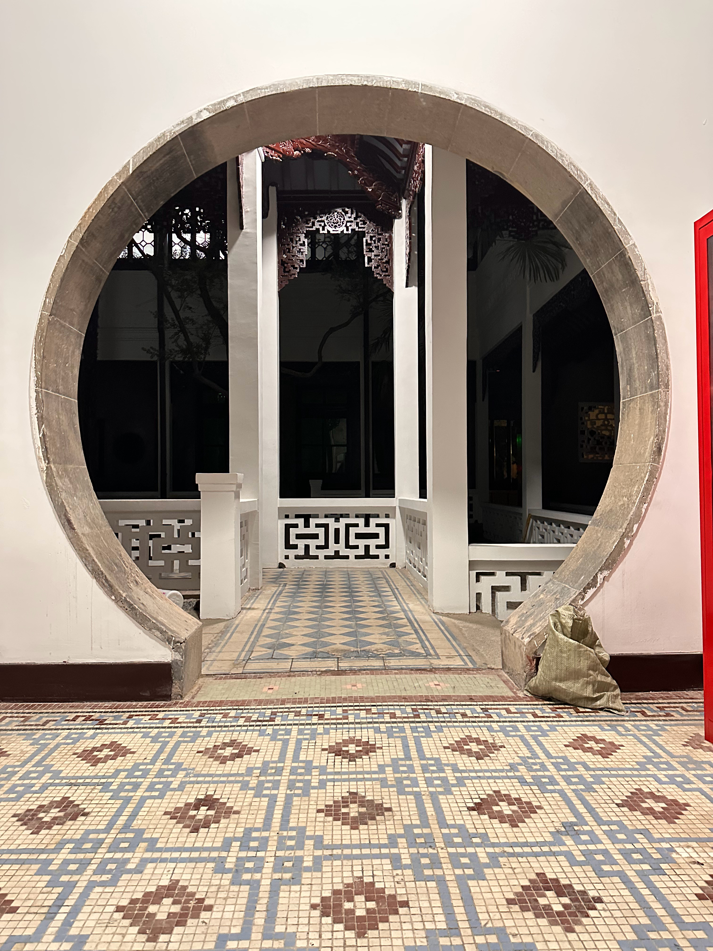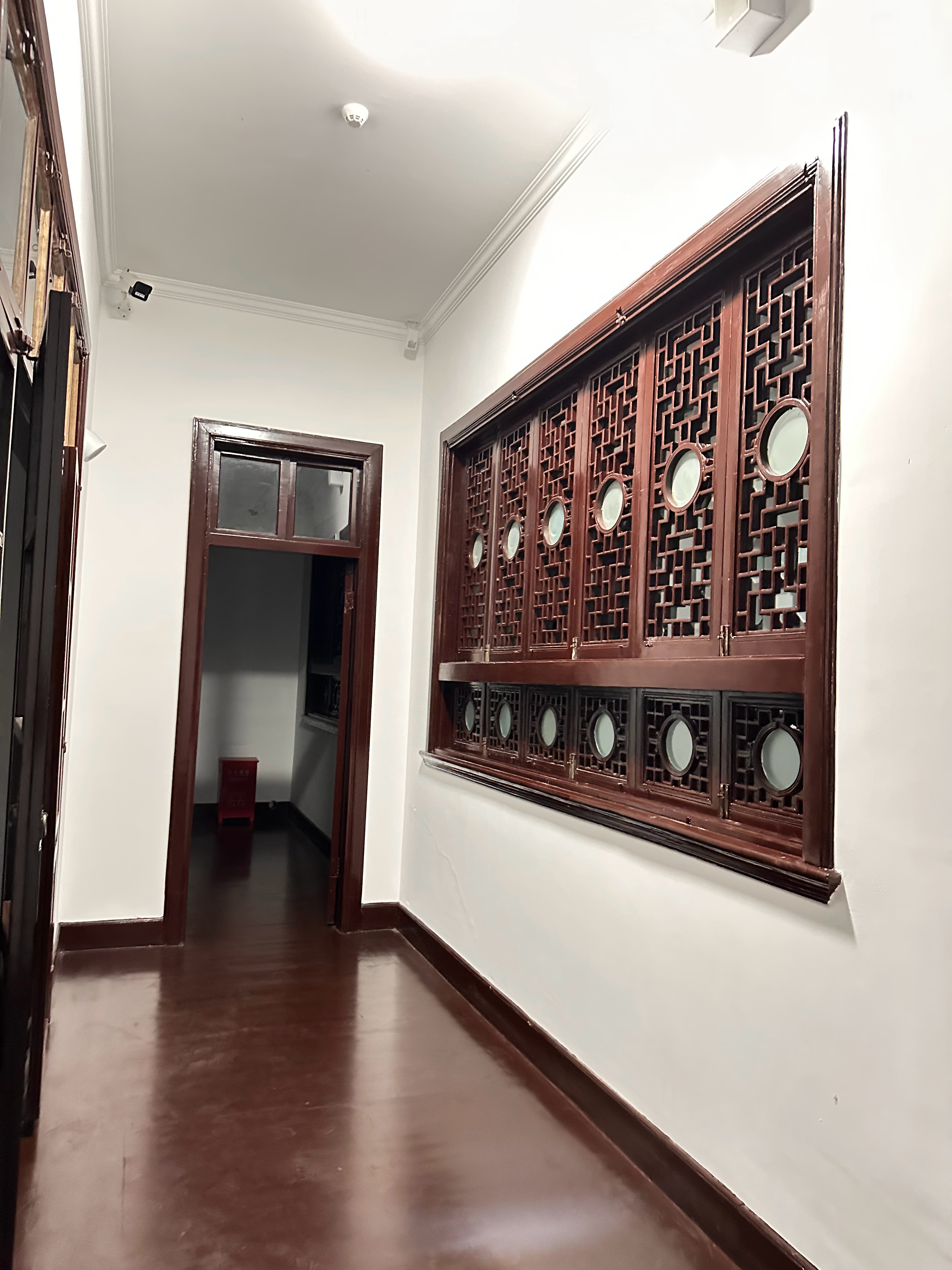 夜游天香小筑,楼上室内也大面积用了长窗,长窗裙板刻了很多诗文,绘画,古玩,类似罗苑湖天一碧楼,最前面的花厅屏门也装饰青铜器古玩图案,原图案里应有填色和细螺钿粉末,现在全部涂成红色,天香小筑最好的是楼和廊的空间组合,很妙