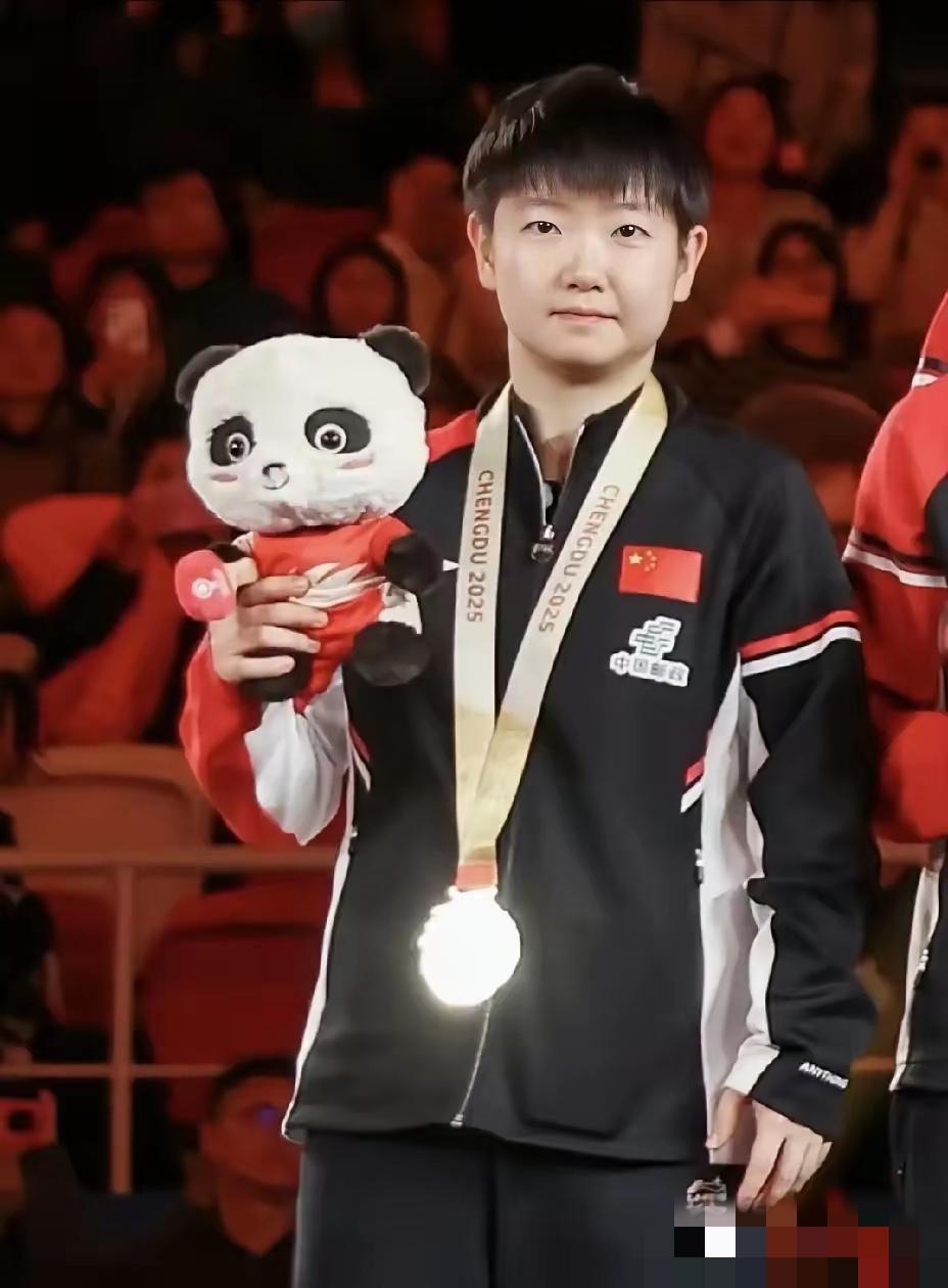 神奇一幕!颁奖台上莎莎奖牌惊现“自带追光”,对比身边人效果太绝。 昨晚看颁奖视频,真的被惊到了——莎莎那块奖牌,在满场灯光下亮得晃眼,像自己会发光一样! 当时台上每个人都抱着熊猫玩偶,姿势也差不多。但奇怪的是,别人的奖牌都安安静静,只有莎莎胸前那块,闪着特别亮的光。我还以为是她拿玩偶的角度巧,没挡住光,结果看了一眼旁边的梁靖崑,他也没挡着奖牌啊,可就是没那么亮。 这真的不是巧合能解释的。就好像那光专门追着她跑,哪怕她只是安安静静站在一边,所有人的目光还是会忍不住落到她身上。有些人就是这样,天生就该站在高处,站在最亮的地方——莎莎就是这样的人。