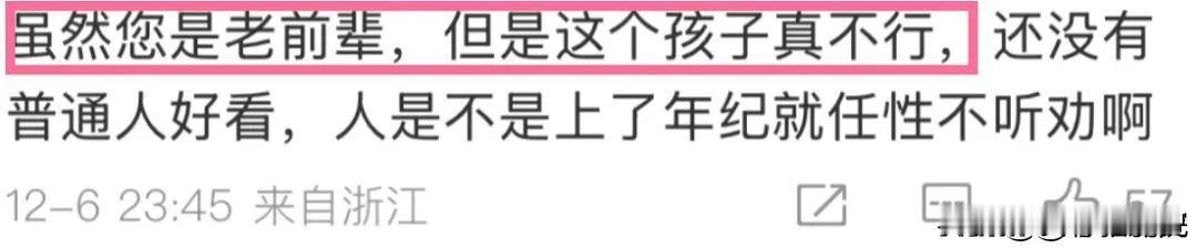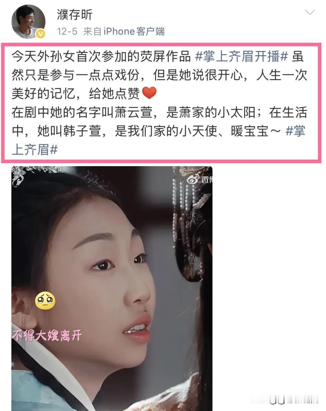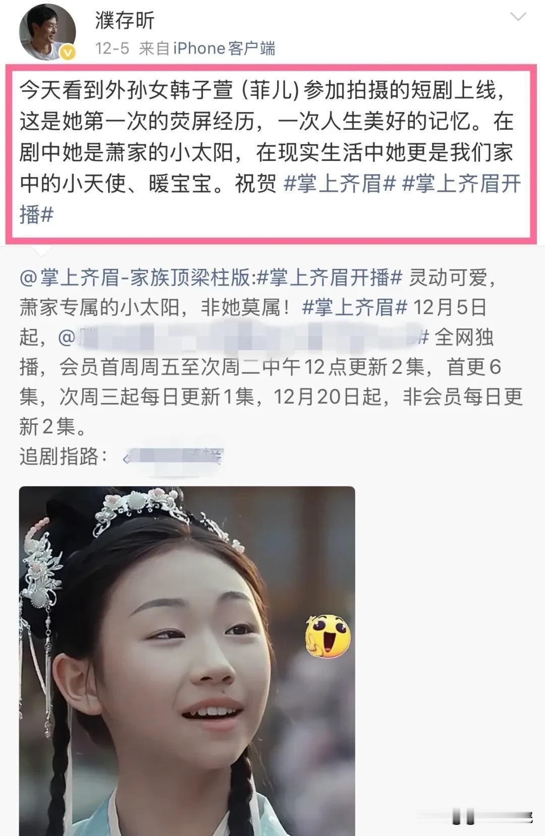 星三代来了!72岁濮存昕宣传外孙女新剧,长相引争议:内娱完了。[嘘] 星二代,已经在娱乐圈越来越常见了,但没想到,现在星三代都开始登场了! 这一次,内娱的“星二代焦虑”已经升级到“星三代恐慌”了。 最近,老戏骨濮存昕在社交平台发了几条动态,为自己11岁的外孙女打气,小姑娘在一部短剧里客串了个小角色,姥爷看着高兴,就分享了出来,这本是件平常事,就像家里长辈发朋友圈晒孩子获奖一样。 没想到,就这么几条动态,评论区却热闹了起来,有人感叹“内娱完了”,有人直接议论起孩子的长相,甚至扯到“资源世袭”这样的大话题上,一场简单的家庭分享,瞬间变成了公众讨论的焦点。 濮存昕老师大家都很熟悉,演技和人品都没得说,他外孙女这次拍戏,按家人的说法,纯粹是孩子觉得好玩去体验一下,总共没几句台词,还是自己提前背好的,在家人眼里,这和参加一次课外兴趣班没什么区别。 但网友的反应,其实也戳中了一些现实痛点,这些年,我们确实见过不少“星二代”、“星三代”早早出现在镜头前,当一些年轻人靠着家庭关系,轻松拿到别人奋斗多年都得不到的机会时,观众心里有想法很正常。 大家反感的,或许不是某个具体的人,而是那种“拼爹比拼实力管用”的感觉,这种担忧可以理解,毕竟谁都希望看到公平的竞争环境,看到真正有才华的人能被发现。 不过话说回来,家庭背景在演艺圈真是万能钥匙吗?看看那些真正站稳脚跟的“星二代”,像谢霆锋、郭麒麟、王骁,哪个不是靠自己一点点打拼出来的?他们确实起步时有关注度,但这份关注也是双刃剑——观众对他们的要求往往更高。 反观一些砸了重金力捧的,最后观众不买账的也不少,这说明在这个行业,背景能帮你开门,但能不能在里面待得住,还得看真本事,观众的眼睛是雪亮的,好不好,作品会说话。 至于对一个11岁孩子外貌的评价,确实有些跑偏了,讨论行业现象可以,但对着一个未成年孩子评头论足,已经超出了就事论事的范畴,孩子的一次体验,不应该承受这么沉重的解读。 这件事挺有意思,它像一面镜子,照出了不同人群的关注点,长辈看到的是孩子的成长瞬间,行业观察者看到的是资源分配问题,普通观众看到的可能是对优质内容的期待,这些视角都没错,只是放在了同一件事上。 德高望重的老艺术家,72岁的濮存昕罕见连发三条动态,为自己11岁的外孙女新剧宣传,评论区却瞬间炸开了锅。 “老爷子不就是发个动态,夸夸自家孩子吗?这跟普通家庭发个朋友圈晒娃有啥区别?没必要上纲上线到‘内娱要完’吧,对一个11岁小孩的相貌指指点点,更没必要。” “大家骂的其实不是这个具体的小女孩,而是‘星三代’这个符号,我们反感的是那种生下来就在罗马,轻轻松松就能拿到别人挤破头也够不到的机会的感觉,普通人家的孩子学十几年表演,跑无数个剧组,可能还不如别人发一条动态的关注多,这种不公平感,才是‘内娱完了’这句话背后的真意。” “什么时候对一个11岁孩子的评价标准,只剩下‘好不好看’了?这种对未成年人的容貌指摘,既刻薄,也暴露了审美的单一和狭隘,娱乐圈如果只剩下一种‘美’的标准,那才是真的完了。” “看看人家,同样是星二代,但人家是从小角色、小配角一点点磨出来的,观众是眼看着他们用演技站稳了脚跟,大家反感的从来不是你的出身,而是你只有出身,没有匹配的实力,还硬要占着位置。” 那么想问问大家:你对“星二代”、“星三代”频繁进入娱乐圈这种现象,持什么态度?你认为一个演员要获得观众的长久认可,最重要的资本应该是______?(是家庭背景、出众外貌、专业实力,还是别的什么?) 信息来源:网易新闻