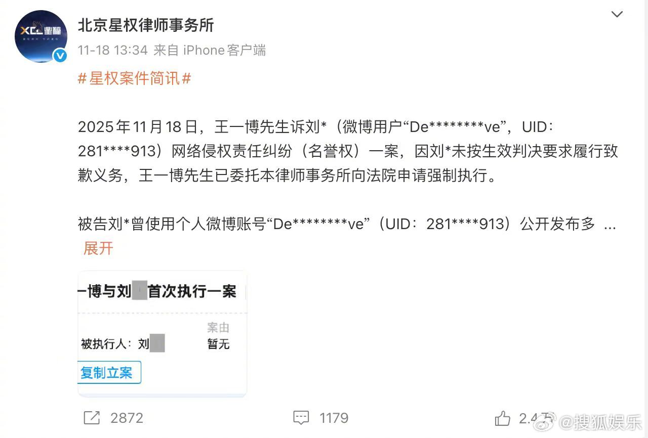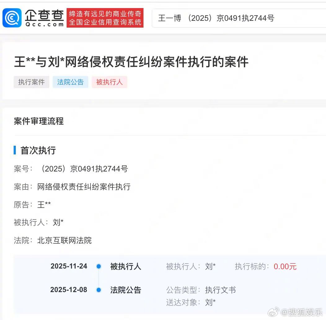 【博主诽谤王一博被法院公告】据企查查信息,法院刊登王一博与刘某网络侵权责任纠纷民事判决书。法院认为被告发布的涉案评论针对使用了人身攻击性侮辱词汇、没有事实依据的不当陈述。判决刘某在涉案账号上公开致歉并赔偿经济损失等2.5万元。王一博申请强执黑粉