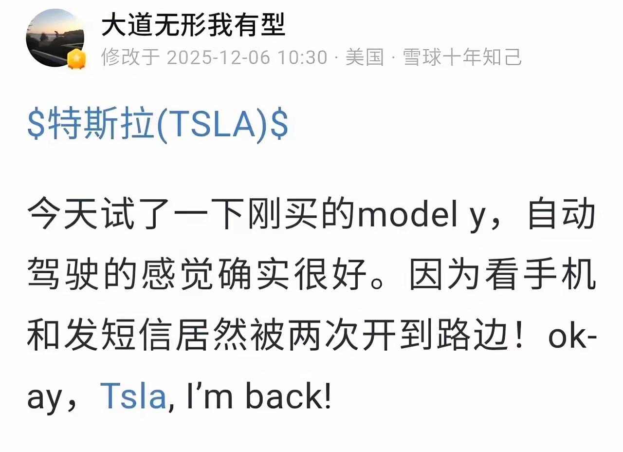 历史的脚步不会因为任何人而停止! 以前段永平不喜欢马斯克的性格,也不认为自动驾驶比人安全,这次自己亲身体验后,马上改变想法了。 汽车电动化,这是未来的趋势,不管你多权威,也无法阻挡! 不知道,阿段会不会因为电动车良好的体验感,而改变对未来的看法,进而重金购买特斯拉股票。你觉得他会吗?