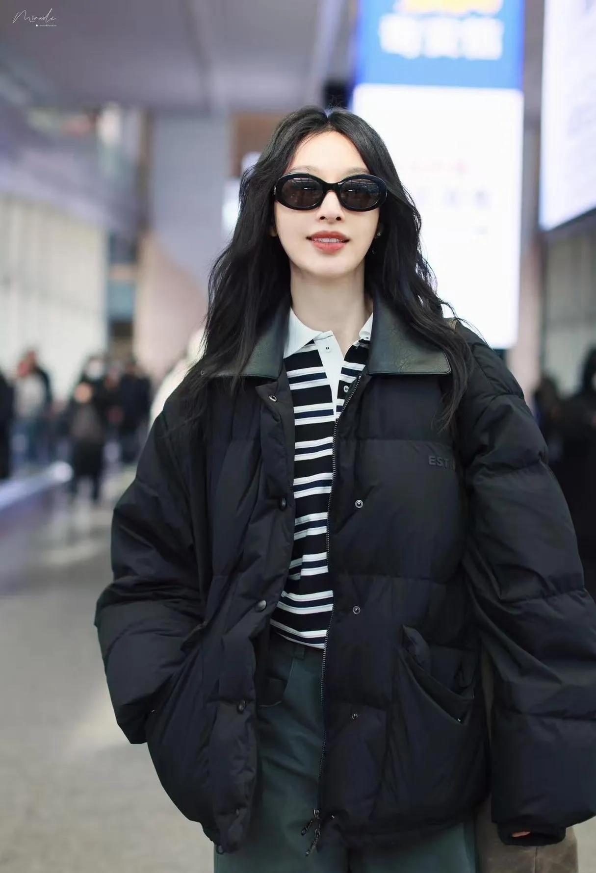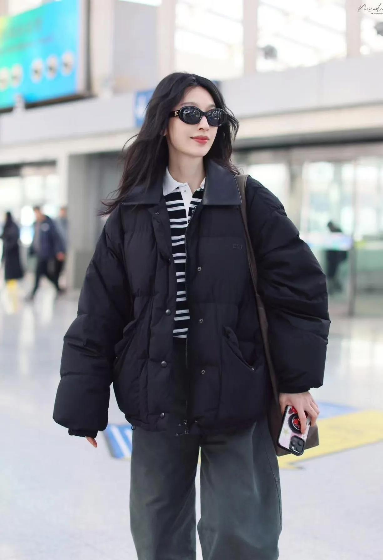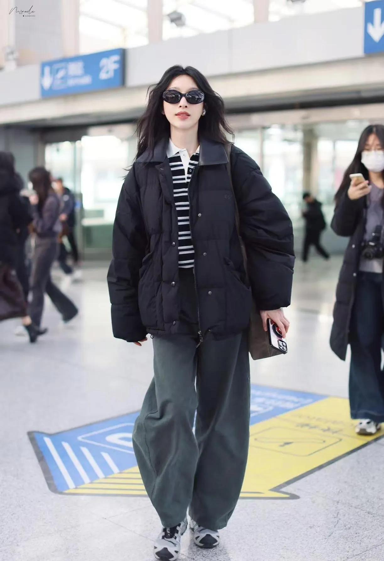 张俪这羽绒服穿搭,把“高街慵懒感”焊在身上了 谁懂啊!张俪机场这身黑羽绒服+条纹Polo+灰阔腿裤,直接把“保暖≠臃肿”写进秋冬穿搭教科书👇 40岁穿成这样,哪是“过冬”?明明是把“松弛冷感”焊在身上,普通人照搬这公式,通勤出街都能赢很大!