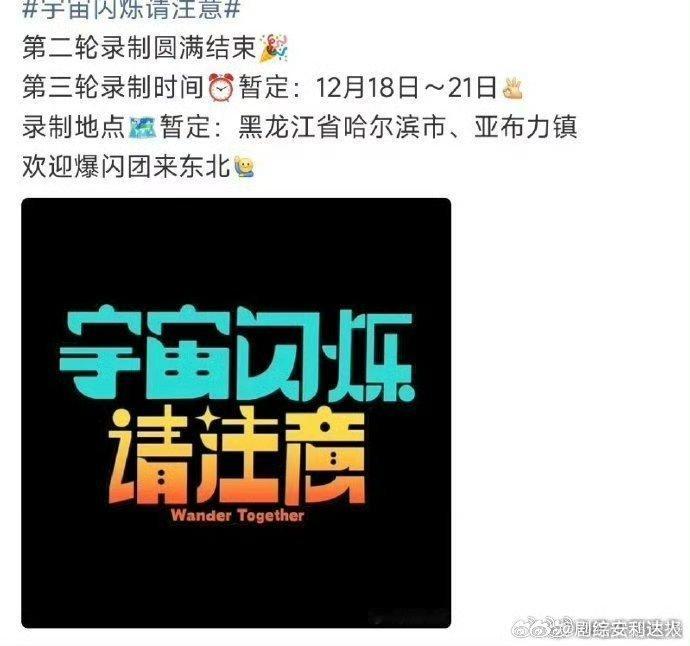 宇宙闪烁请注意下一期去哈尔滨宇宙爆闪团下一站去哈尔滨玩《宇宙闪烁请注意》锁定哈尔滨!宇宙爆闪团全员集结,欢乐满满的旅程即将启程。