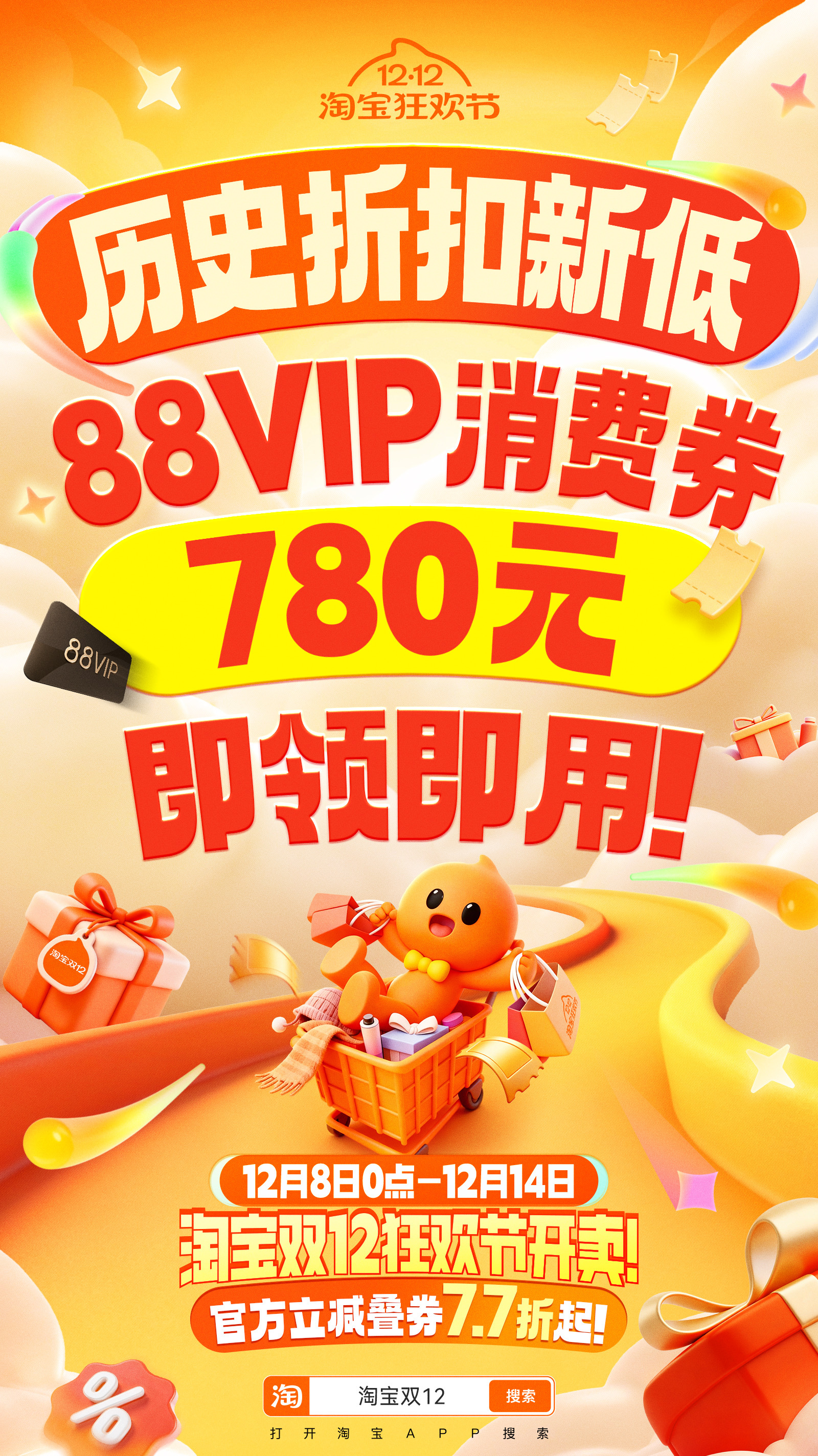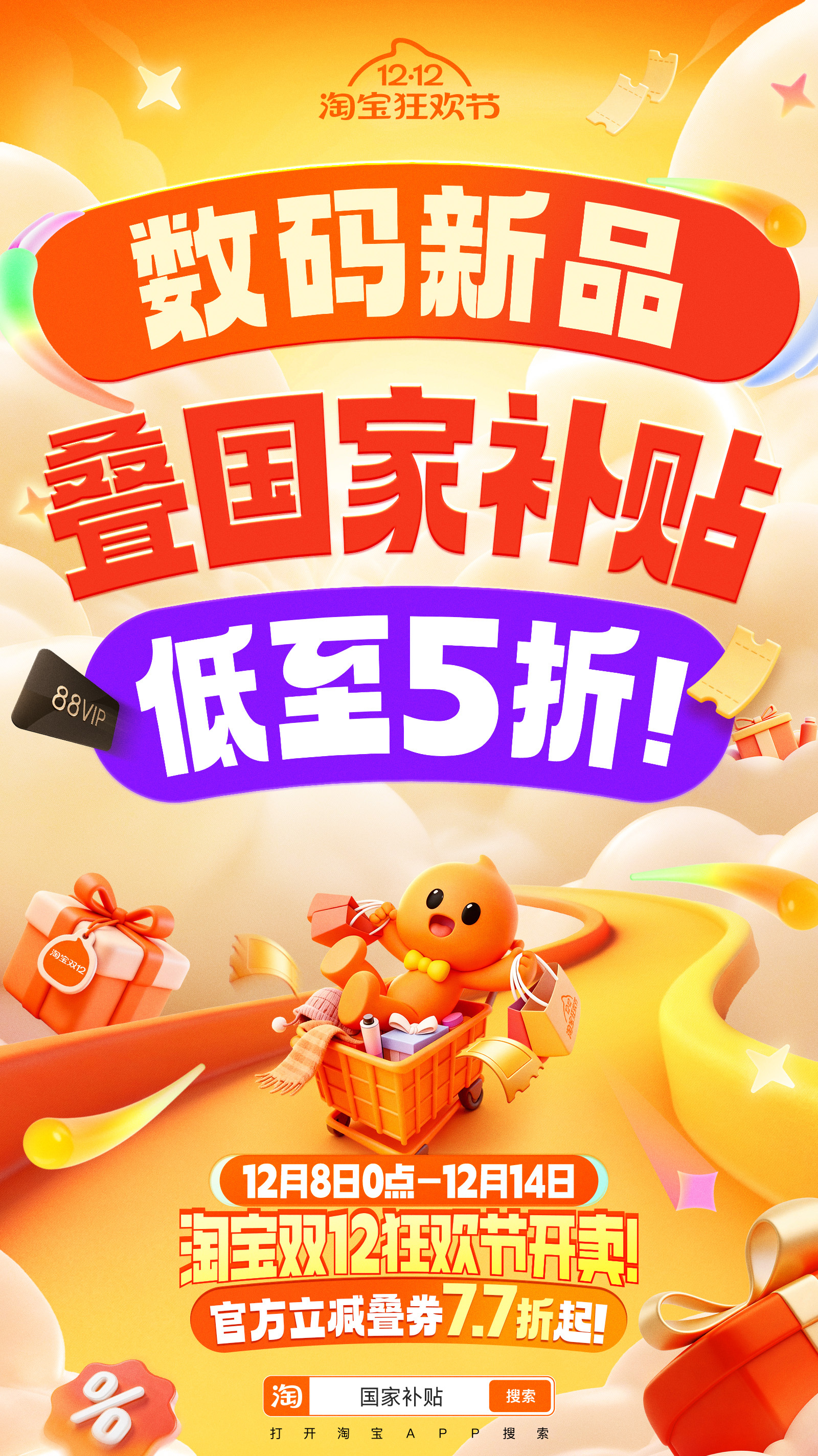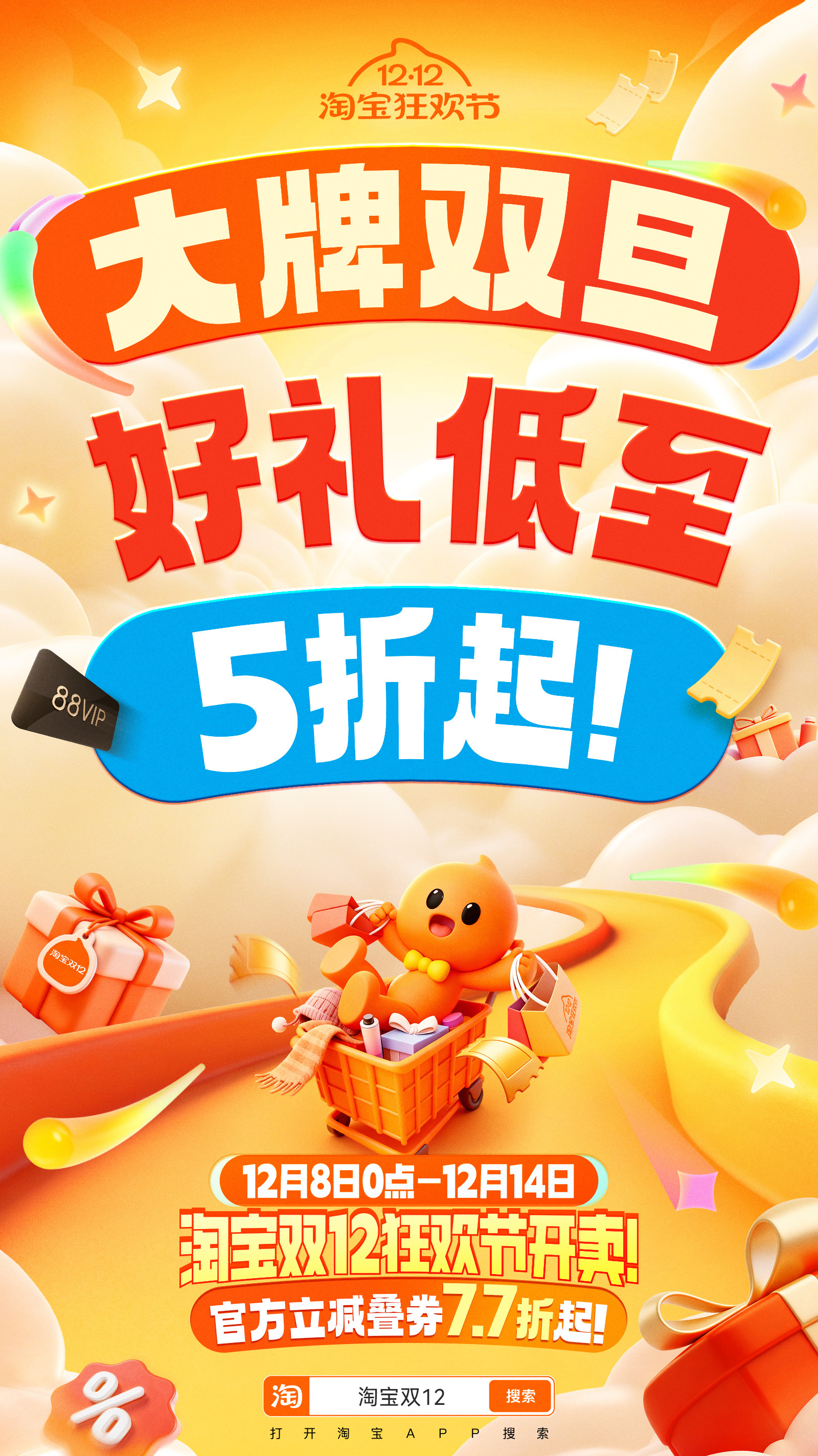 年末犒劳自己,就趁现在!淘宝双12来了 即日起到12月14日,8历史折扣新低88VIP消费券,还有950元大家消费券,想给家里换新家电的宝子们可以冲了!官方立减商品叠券7.7折起!大牌双旦好礼、数码新品叠国家补贴更是低至5折起!降温也不怕,可领双旦礼赠保暖焕新官方补贴,大牌保暖羽绒扫货价低至2.9折!年末扫货价,就上淘宝双12!双12上淘宝扫货价带走