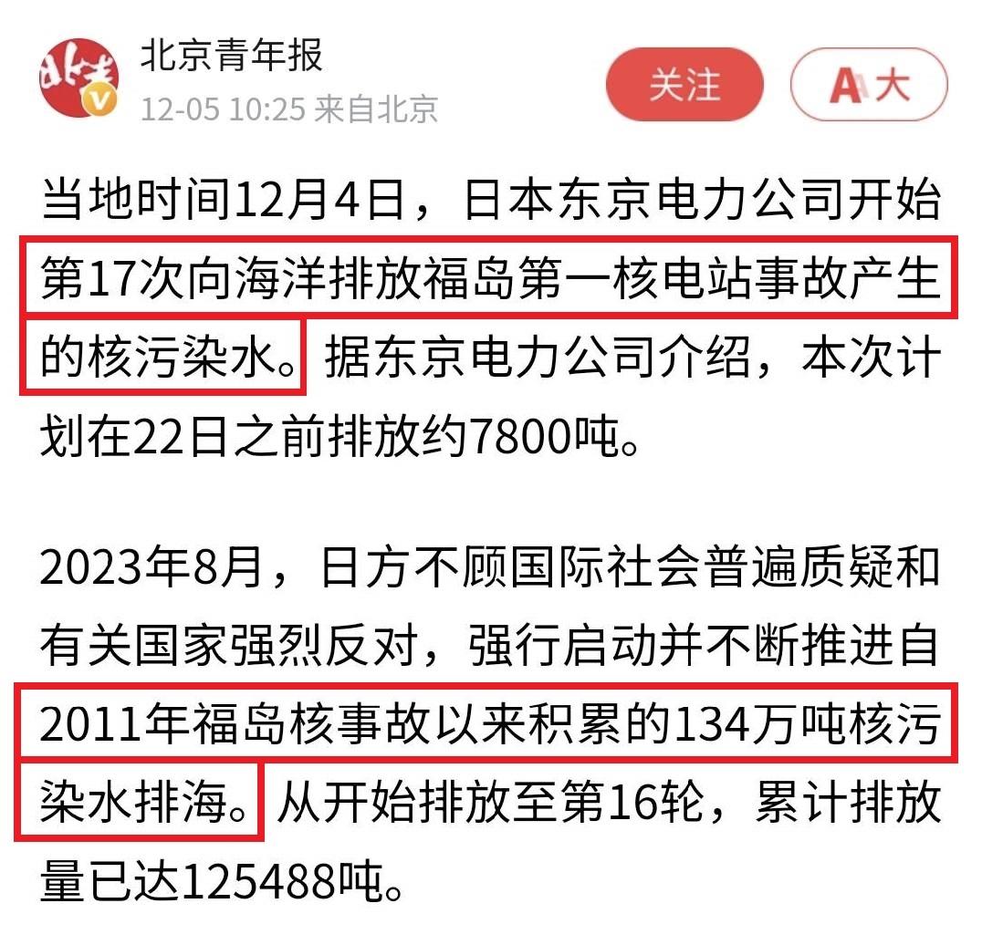一个大胆猜想,日本不停地排核污水是在核试验! 这几年,日本不停地向海洋排放核污水,最新的一次是12月4日,按顺序算的话已是第17次排放核污水了,累计排放了134万吨核污水。 明面上,这些核污水是福岛第一核电站事故产生的,但是,我大胆地猜想,这些核污水里有核武器生产过程的废水,日本只能以这种方式偷偷排放,并借助核电站为幌子来打掩护。 有人可能会从各种角度分析,认为日本不可能这么做,但这么想的人,都高估了日本人的人性。以日本人的脑洞,他们真可能这么干。 他们在国外搞的话,很容易被发现,但他们国土那么小,又没地方做试验,现在正好有一个现成的核电站"灾区",外人不敢进,里面原料又是现成的,加工的废弃物又以废水形式对外排放。 日本又是一个多地震国家,不妨更大胆猜测,他们甚至敢在发生地震时做地下试验,蒙蔽外界。 以日本在历史上的种种表现来看,不管什么反人类的点子他们都敢去想,敢去干。有理由相信,他们但凡有一丝丝搞核武的可能,他们就绝对不会放过! 我国对日本的防备之心真的不能松懈,不能低估日本偷偷摸摸搞核武的决心,也不能低估日本搞核武的技术!