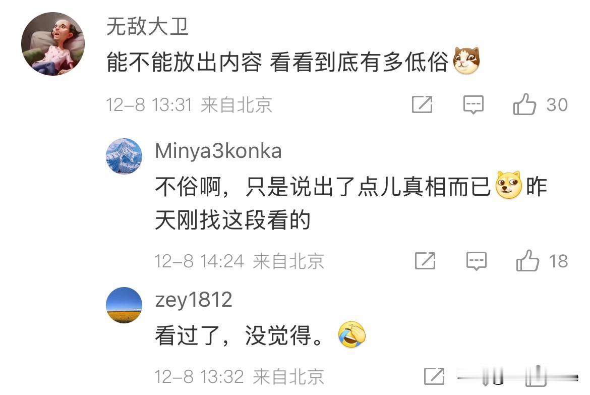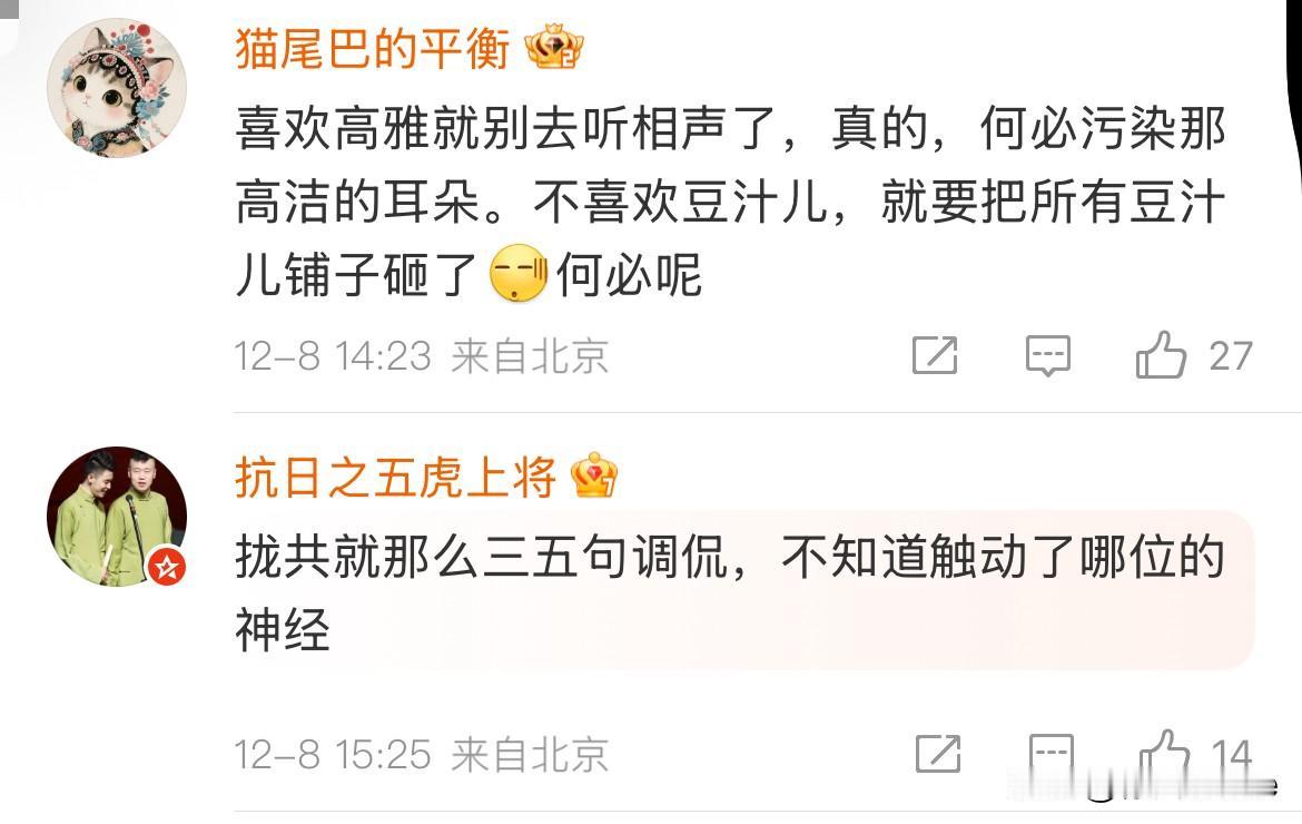 12月8日,郭德纲相声《艺高人胆小》被举报内容低俗,网友一边倒站位郭德纲! 相声本就是市井文化,俗才更贴近大众心声! 对于网友的评价我是认可的,每个人从小到大基本都听过相声,它本就是民间俗文化,讲的也都是些家长里短婆婆妈妈兄弟姐妹台上台下看官们的调侃话,要说它俗,它确实俗,说它底水平,也确实是,但两个字放在一起,是没有的,特别是这些年看着德云社的综艺,看他们创作相声的过程,每个人心里都有谱,什么能讲什么不能讲,徒弟们都知道的事,师傅还会冒犯么?
