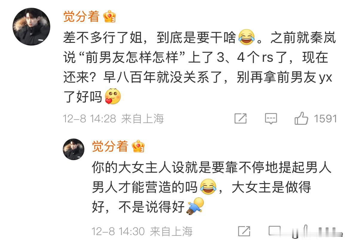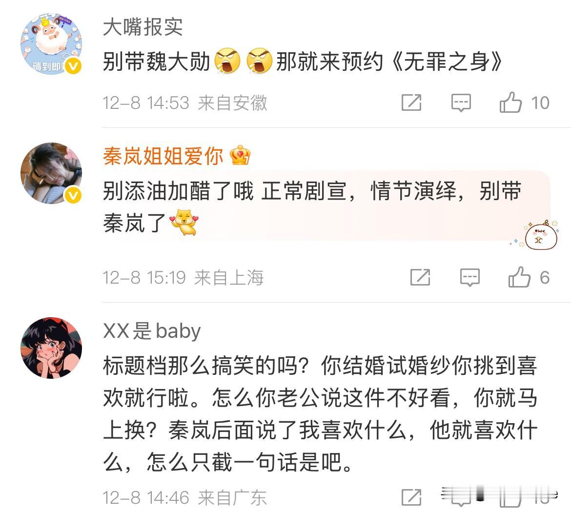 12月8日,魏大勋不跟杨幂说话,关秦岚什么事?为什么今天都在说魏大勋秦岚分手? 搜了半天才知道,原来是因为秦岚的一句话产生的误会,又恰好两件事发生时间差不多,就有人产生了联动反应,实在令人无奈! 魏大勋秦岚7月以后不是不同框,只是娱记没有拍到同框,秦岚说男人不重要,不是很正常么,她是名事业型女艺人,怎么【魏大勋秦岚分手了么】就上了热搜呢~ 魏大勋秦岚都很保护他们的恋情,就不要给他们恋情使绊子了吧~ 魏大勋