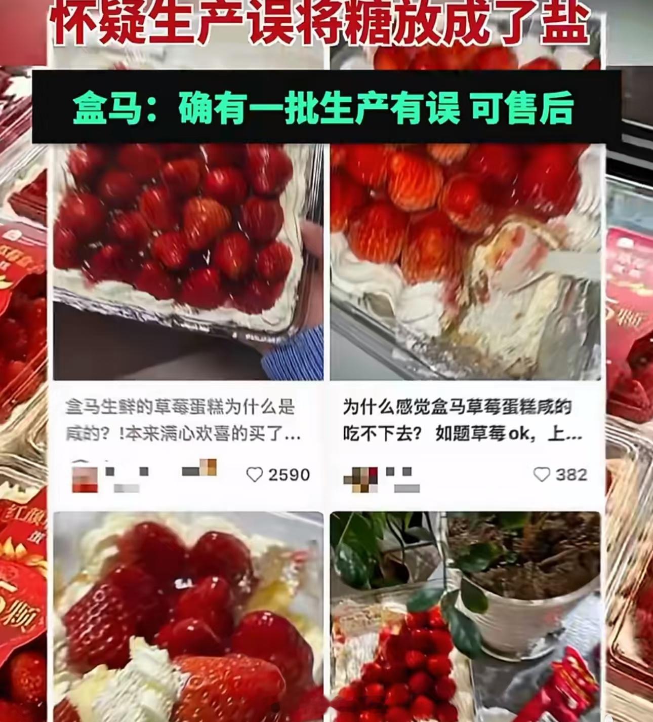 盒马承认生产草莓蛋糕出问题没想到在流水线生产上竟然也会出现把盐当成糖误放到蛋糕里,我以为在厨房炒菜呢…… 而且现在好像还没到吃草莓的季节,就算不是咸的也是酸的