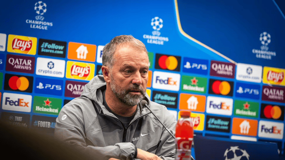 虎扑12月08日讯巴塞罗那主教练汉斯-弗里克出席对阵法兰克福的欧冠赛前发布会。