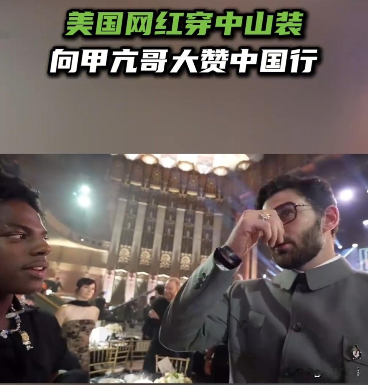 即是认可,也是一种崇拜! 据今日俄罗斯(RT)报道,12月6日,在The Streamer Awards 2025颁奖典礼上,美国左翼播客主持人哈桑身着中山装,与“甲亢哥”畅谈前不久的中国之行,并称这是“最棒的经历”。 今年3月和11月,美国知名网红“甲亢哥”和哈桑先后来到中国,访问了北京、上海等城市。