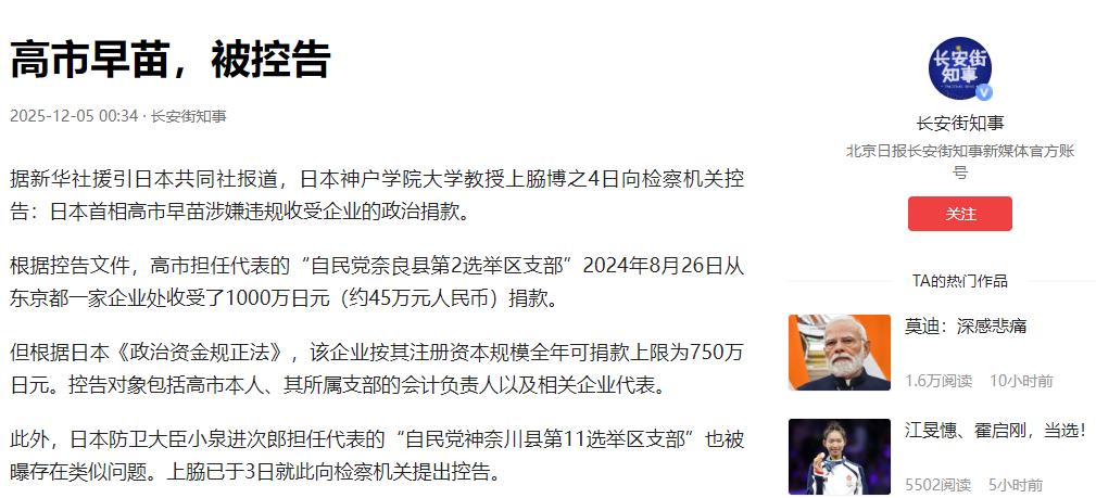 高市这是要跑吗?有迹象表明,日本正在为“撤回涉台言论之前”让高市用“自己的理由”下台。 高市早苗这波操作哪里是当首相,分明是赶着上演 “政治速逃记”,上任刚满 45 天就急着踩刹车,背后全是自民党精心铺垫的 “体面退场” 剧本。 作为被右翼势力推上台的鹰派代言人,她刚坐稳首相宝座就迫不及待在台湾问题上玩火,国会答辩时连完整重申《中日联合声明》都不敢,被中方发言人林剑一句:撤回错误言论,给出明确交代质问戳穿底气,只能用模糊话术敷衍了事,这种既想挑衅又怕担责的模样,活脱脱暴露了内心的慌乱。 但有意思的是,前一天还被“后台老板”麻生太郎公开力挺,转头就没人撑腰,只能自己找补降温,这种态度反转背后,全是自民党见势不妙的止损操作。 真正压垮她的,是自家检察机关递来的“催命符”,日本神户学院大学教授直接把举报材料递到了检察机关,说她所在的选举支部收了某企业1000万日元捐款,远超法律规定的750万日元上限。 而且连防卫大臣小泉进次郎都跟着被牵扯进来,案件已经从个人违规升级到内阁层面的集体嫌疑。 要知道日本政坛最忌讳“黑金”丑闻,之前自民党就因为类似问题元气大伤,现在高市刚上台就踩雷,正好给了自民党弃车保帅的理由。 关键是这起调查根本不是孤立事件,而是反右翼势力和质疑派的联合反击,摆明了就是要借着这个由头把她拉下马。 自民党让她“体面下台”早有先例,之前的石破茂就是在党内逼宫下,以“避免党内分裂”为由辞职,既保住了自民党的面子,又不用承担政策失败的直接责任。 日本政坛37年来的“短命首相”怪圈早就说明,除了安倍晋三这种掌控派系力量的角色,其他首相平均任期也就1年8个月,本质上都是党派利益的临时代言人。 高市现在的处境和石破茂如出一辙,党内要求提前选举总裁的声浪越来越高,已有131名国会议员和20个地方组织表态支持,眼看就要达到“支持门槛”,自民党自然要让她先一步以“自身理由”辞职,避免派系斗争彻底公开化。 那些看着吓人的高支持率根本是掺了水的民意幻象,日本经济新闻社和东京电视台的联合民调显示的75%支持率,其实是右翼舆论机器定向引导的结果。 从数据就能看出猫腻,18至29岁年轻群体支持率高达85%,但60岁以上群体仅63%,传统自民党支持者占了九成,跨阵营认同几乎为零,而且内阁支持率和自民党政党支持率严重脱节,民众支持的只是“强硬领导者”的符号,而非她的治理能力。 可打脸的是,48.8%赞成她涉台言论的同时,44.2%的人明确反对,还有46%的人抵制她修改“无核三原则”,东京、冲绳等地接连爆发大规模示威,344.9万份抗议签名更是戳穿了所谓的“民心所向”。 她的执政政绩更是一塌糊涂,2025年三季度日本GDP按年率下降1.8%,实际工资连续9个月下降,核心通胀却涨了50个月。 而且她承诺的“降低生活成本”“刺激经济”全是空头支票,反而要计划提高个人所得税,把教育、医疗预算挪去搞防卫开支,还增发11万亿日元国债,这种不负责任的财政扩张连日本经济界都看不下去。 自民党本来是想让她当“鹰派门面”,没想到她既搞砸了外交,又引发了国内民怨,还带着内阁陷入丑闻,继续留着只会拖累党派利益。 按照自民党的套路,接下来高市大概率会找个“健康原因”或“为党内团结考虑”的借口主动辞职,就像之前的菅义伟、石破茂那样,用“体面撤退”掩盖被迫下台的真相。 这种换首相就像换衣服的操作,根本解决不了问题,日本右翼势力炒作“台湾有事”的野心没有改变,自民党内部派系斗争的逻辑也从未变过。 高市的下台不过是这场政治闹剧的中场休息,只要日本不正视历史、不纠正错误,不放弃干涉中国内政的企图,下一个“高市早苗”的出现只是时间问题,而日本政府欠中方和国际社会的交代,从来都不是换个首相就能一笔勾销的。