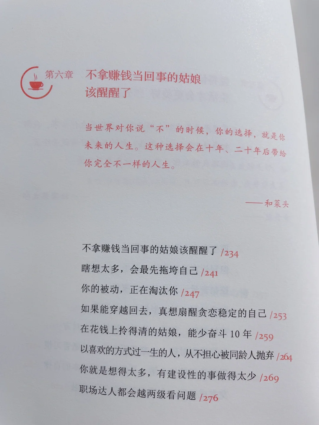 一本看完目录感觉头脑都会清醒不少的朕能亮好书,想到自己在低谷期的时候真的埋头看了很多类似的书籍,对我自己来说是真的很有用,状态不好的时候必须懂得自救,阅读也是一种很好的方式,相当于和作者聊天倾听她的经历与人生感悟,那种感觉就像身体很虚弱的时候喝下一碗大补鸡汤,慢慢的就恢复到很好的状态