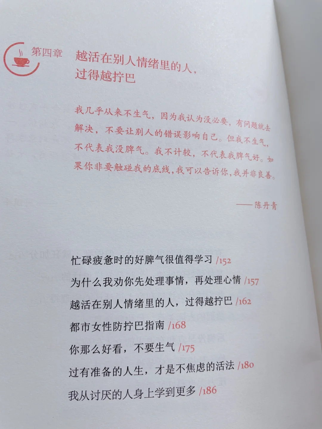 如果你拧巴、不自律、拎不清、玻璃心、焦虑、迷茫、患得患失、钻牛角尖、还想太多,生活中太多负能量过得太压抑,那真的可以好好读读这本书,我相信你看完会很好的改变你的现状