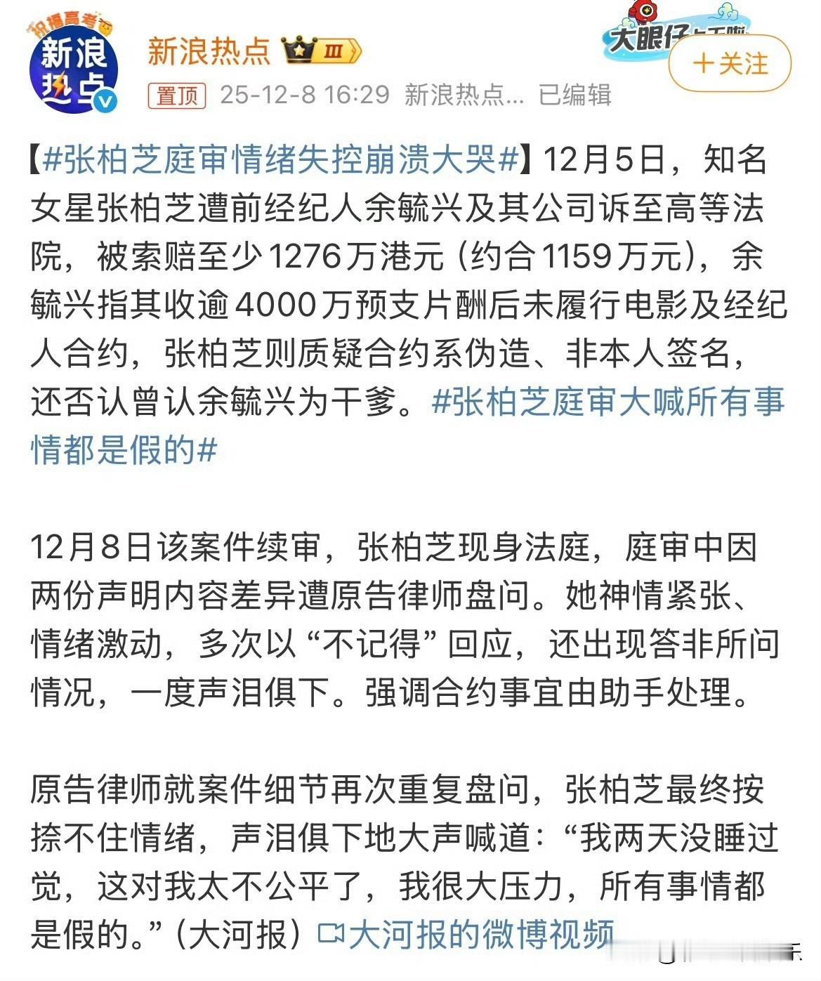 张柏芝太不体面了,这么大的女明星被前经纪人告上法庭,索赔1276万港币。 张柏芝在法庭上答非所问,还崩溃大哭,大声喊一切都是假的。 法律不是讲情面的,不是谁大声谁就有理,她如果真的是被冤枉的,应该拿出证据交给法官,而不是被情绪操控。 性格决定命运,终于知道为什么她会感情不顺事业也坎坷了,就是情商太低吃了没文化的亏。