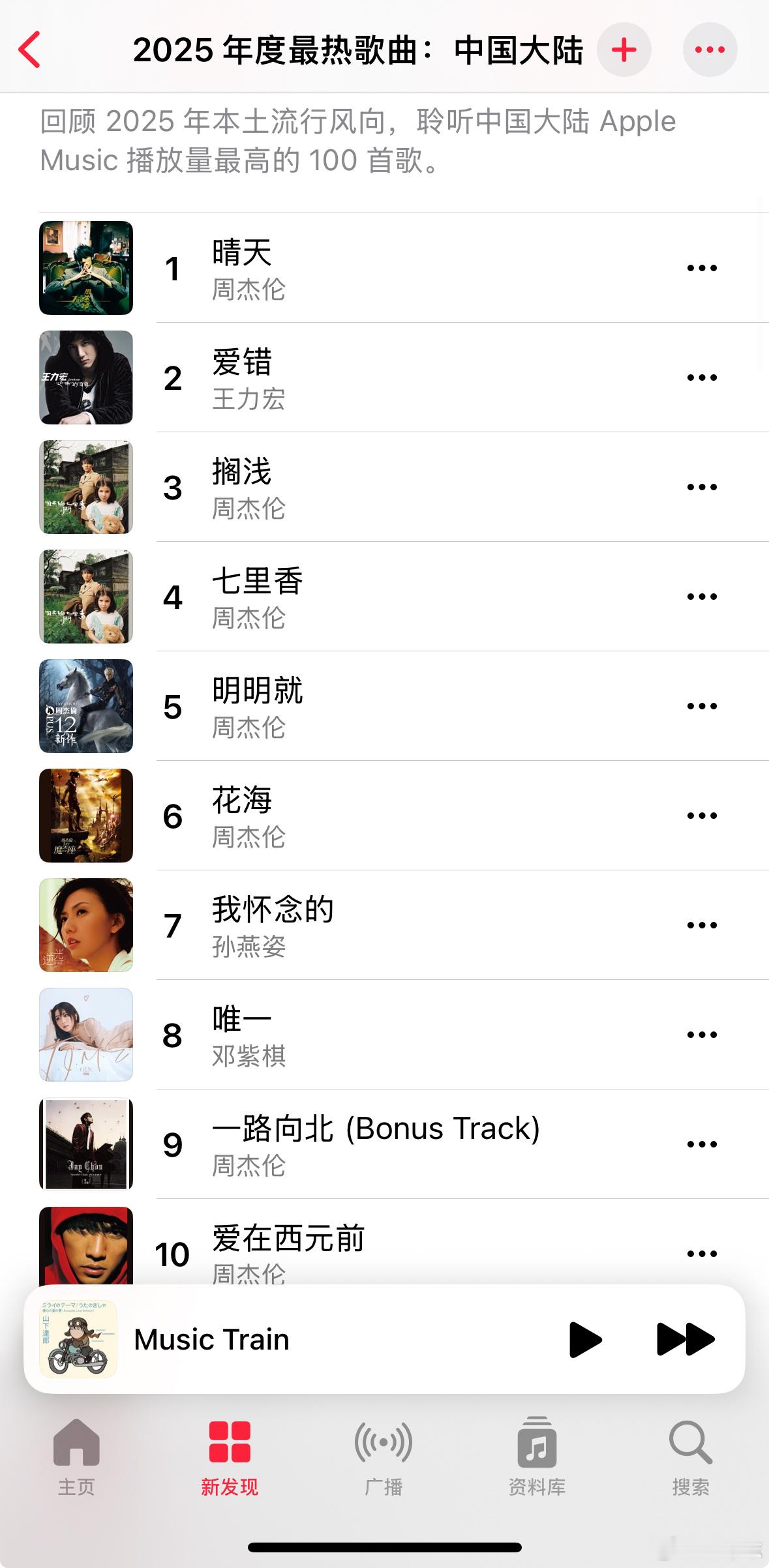 盘点2025 晚上听歌,点开Apple Music的国内2025年度最热歌曲榜单,破防了 原来大家都在通过歌曲怀念那个美好的时代。