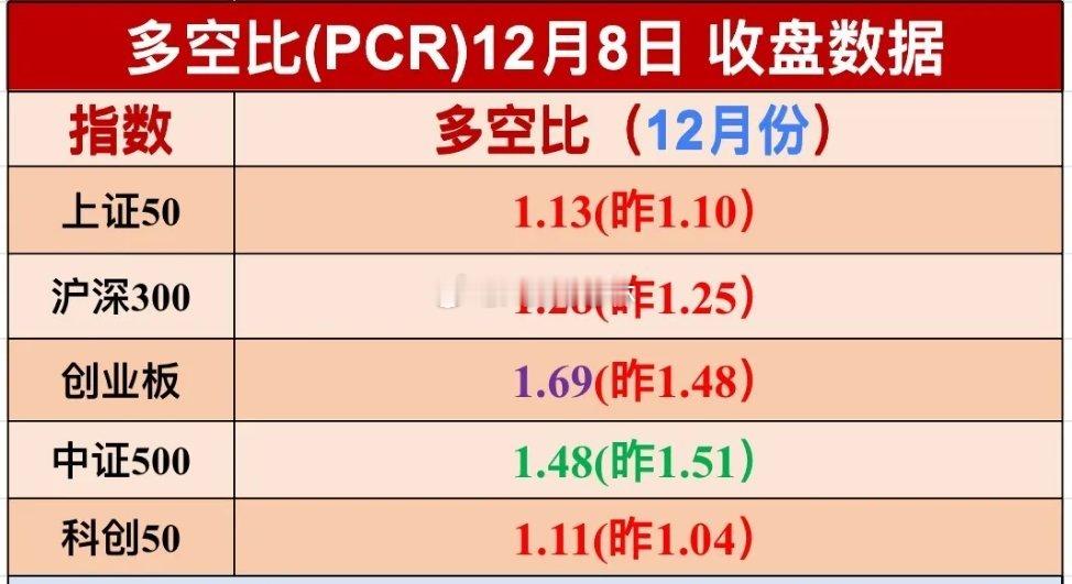 12.9日,周二行情不用猜了,没有悬念,继续看涨,但不是普涨,是分化行情。周一放量反弹,证券带头,科技助攻,虽然尾盘回落,但是赚钱效应明显,12月中旬前不会有大的风险,之间会有回调,但不会深度回调。年底末会不可能反转走加速行情,上周四前没有大幅加仓布局的,本周不建议再追高重仓介入。 周一,美三大股指小幅下跌,大型科技股涨跌不一,特斯拉跌超3%,谷歌跌超2%,博通涨超2%,英伟达涨1%,盘后继续涨超2%,存储芯片集体上涨,美光科技大涨超4%。 热门中概股有涨有跌,百度涨超3%,小鹏涨2.6%,网易跌超2%。 期货黄金下跌23美元每盎司,期货石油下跌超2%。 点赞转发关注投资理财不迷路。 周一多空比数据有所上升,都在1.0以上,多头占优势,利于多头反攻,创业板指数大于1.5,进入减仓节点,中证500板块收涨多空比反而下降,说明主力资金有撤退迹象。