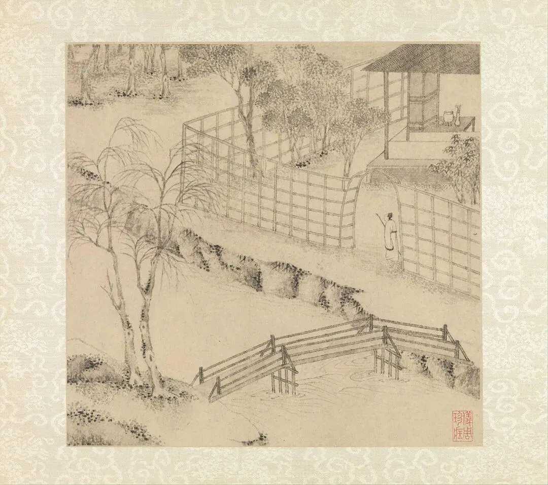 明 文徵明 拙政园图咏册 纸本水墨 26x27厘米 。现藏于美国纽约大都会艺术博物馆。拙政园由明代御史王献臣于1509年始建,选址于唐代陆龟蒙故宅与元代大弘寺旧址,取西晋潘岳《闲居赋》“拙者之为政” 之意命名。王献臣与文徵明交谊深厚,二人同因仕途挫折退隐苏州,形成 “诗酒酬唱、园林雅集” 的文化社群。文徵明不仅参与园林设计,更以绘画与诗文记录其景,最终形成 拙政园图咏册。这就是中国风遇见艺术