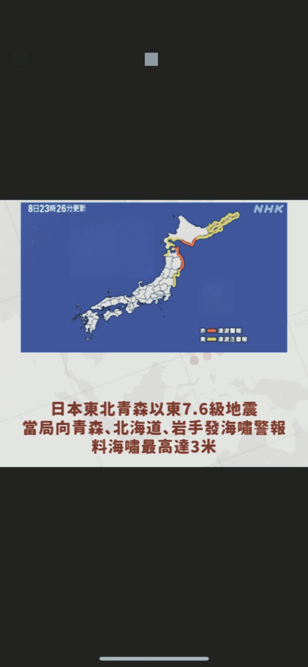 日本刚在涉台问题上放完“狠话”,地壳就直接给了记“耳光”? 这巧合真让人不得不唏嘘! 北京时间12月8日晚10点15分,日本本州东部海域突发7.5级强震,没过9小时又来个6.6级余震,气象厅直接拉响海啸警报,部分海域可能迎3米巨浪。 要知道这地方本就是环太平洋地震带的“高危区”,板块挤压得厉害,可某些人还忙着炒作涉台议题、搞强军扩武。 其实大自然的警告从来都直白,与其盯着别人的内政煽风点火,不如多想想怎么加固防灾设施、保障民众安全。 好在咱们这边明确说了,海啸不会影响我国沿岸,就是心疼当地的华人和游客。 话说回来,你觉得这种地质预警会不会让日本政府收敛点激进操作?来评论区聊聊你的看法~